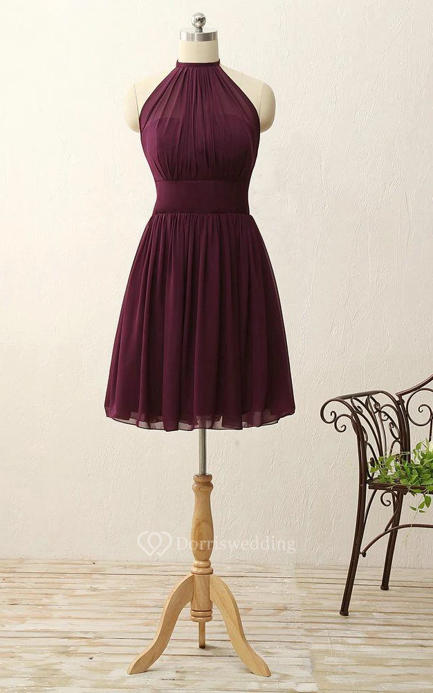 A-line Short Halter Zipper Chiffon Dress