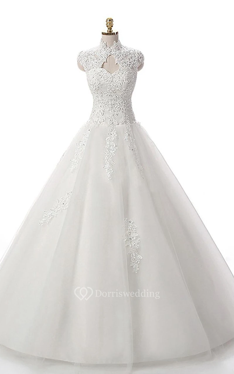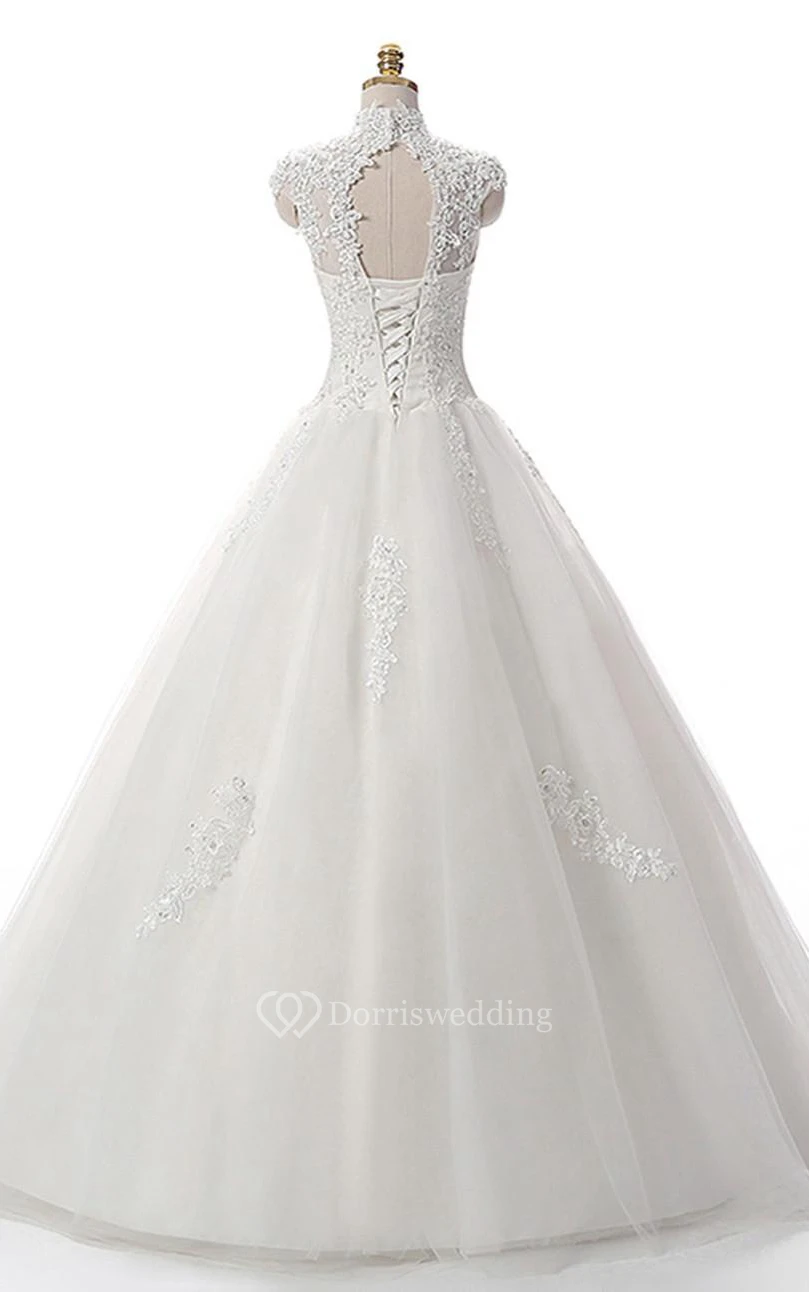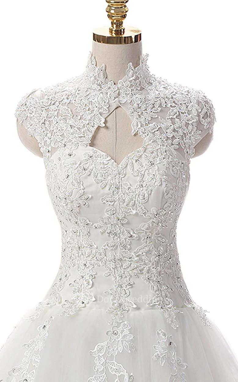 A-Line Short High Neck Straps Cap Ruching Beading Appliques Backless Corset Back Straps Keyhole Tulle Lace Sequins Dress