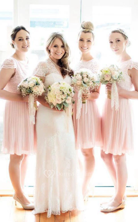 A-line Short Jewel Bell Cap Keyhole Lace Dress
