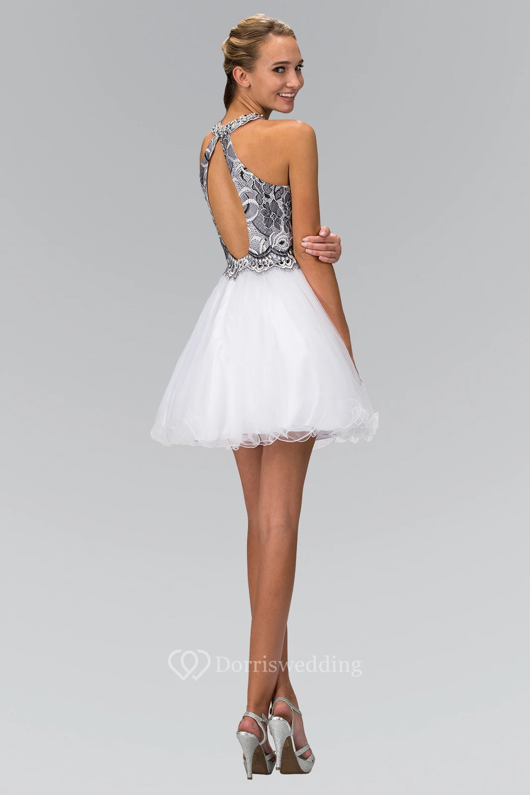 A-Line Short Jewel-Neck Sleeveless Tulle Keyhole Dress With Appliques And Embroidery