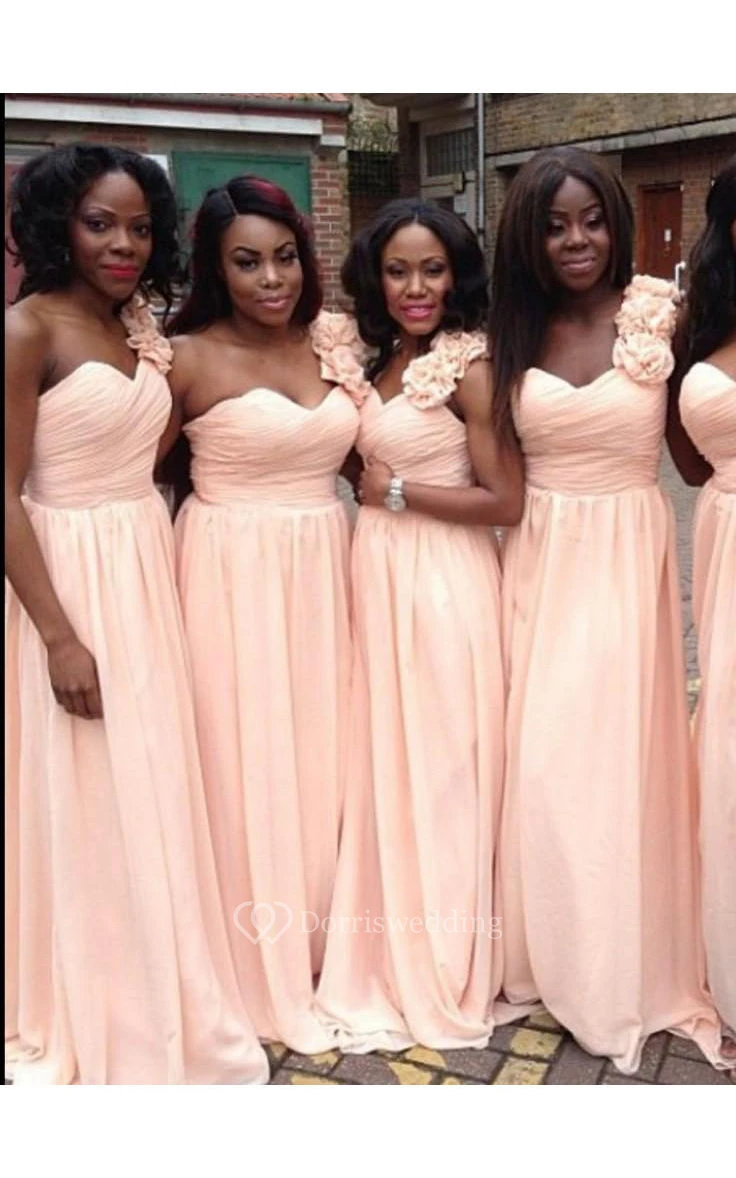 A-line Short One-shoulder Bell Illusion Draping Pleats Flower Ruffles Illusion Flower Sweep Train Zipper Illusion Chiffon Dress