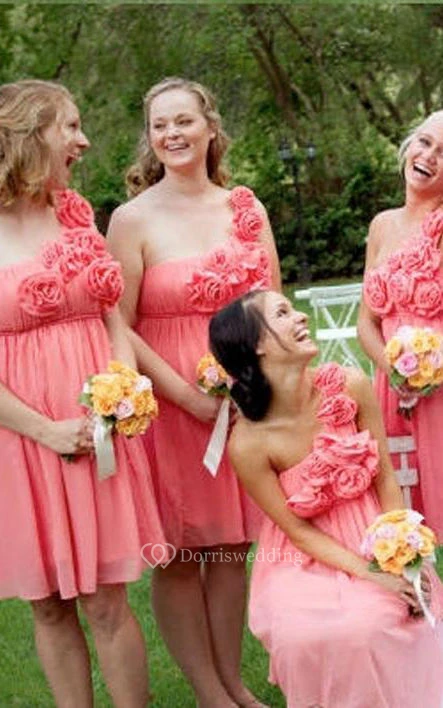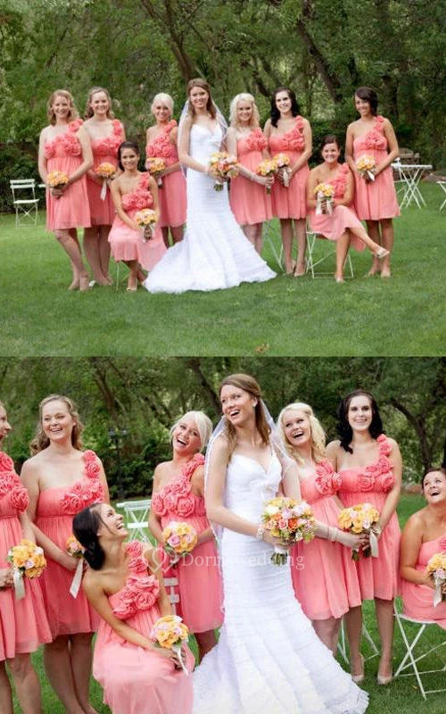 A-line Short One-shoulder Sleeveless Flower Zipper Chiffon Dress