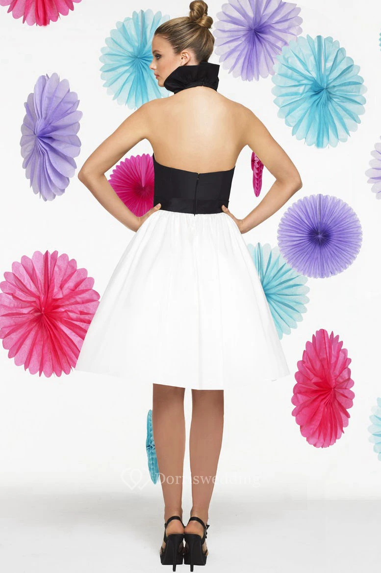 A-Line Short Sleeveless Ruffled High Neck Satin Bridesmaid Dress