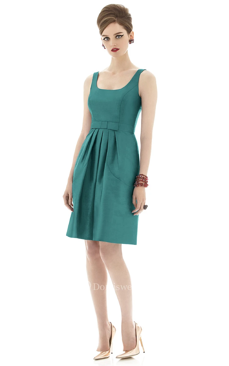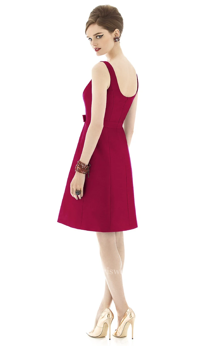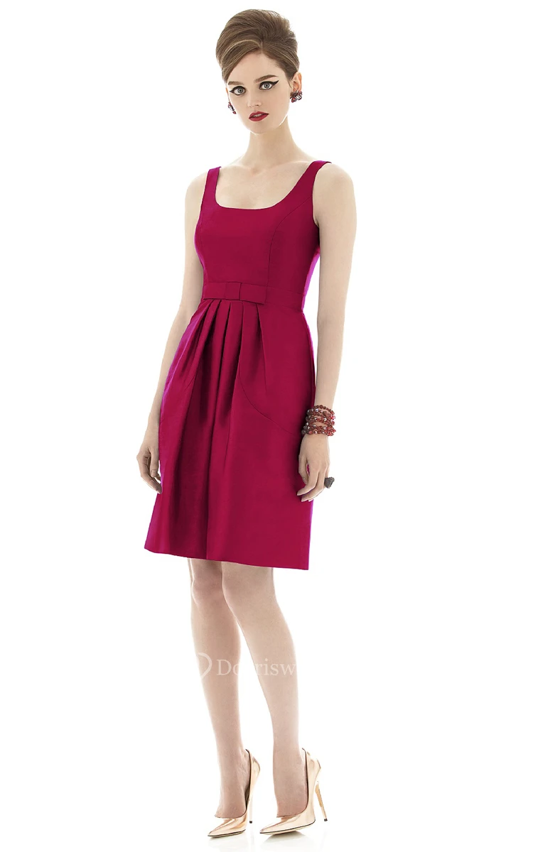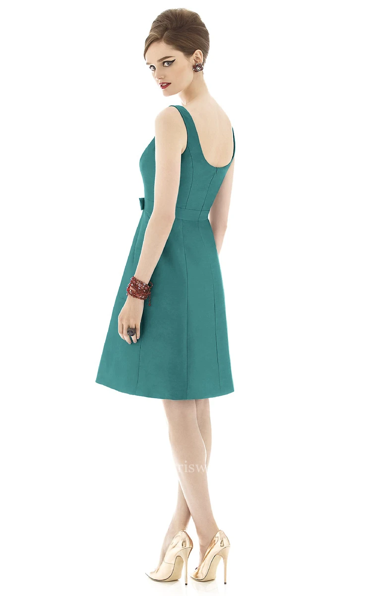 A-Line Short Square-Neck Satin Dress with Straps Back and Pockets