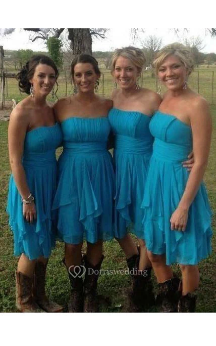 A-line Short Strapless Chiffon Dress with Ruffles