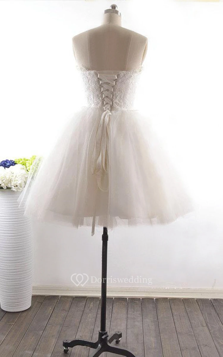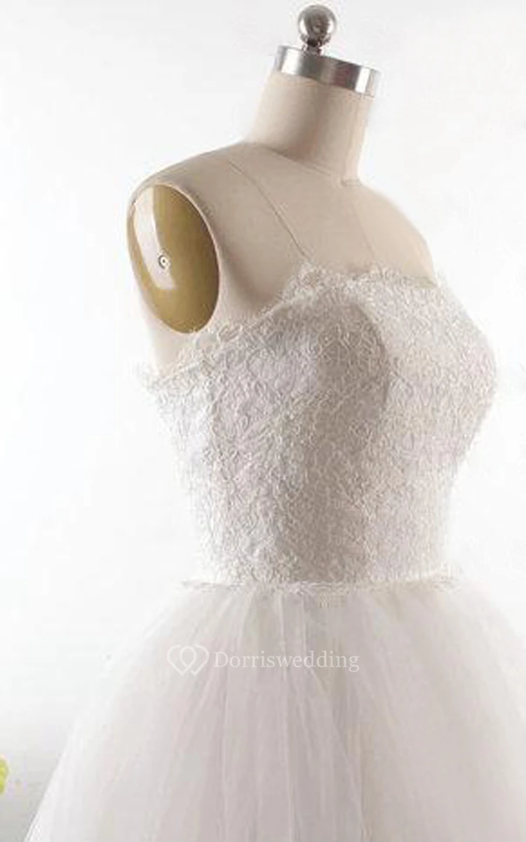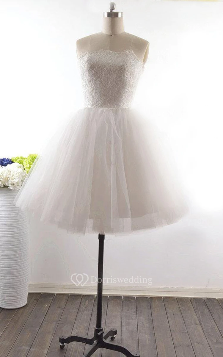 A-Line Short Straps Sleeveless Corset Back Straps Keyhole Tulle Lace Dress