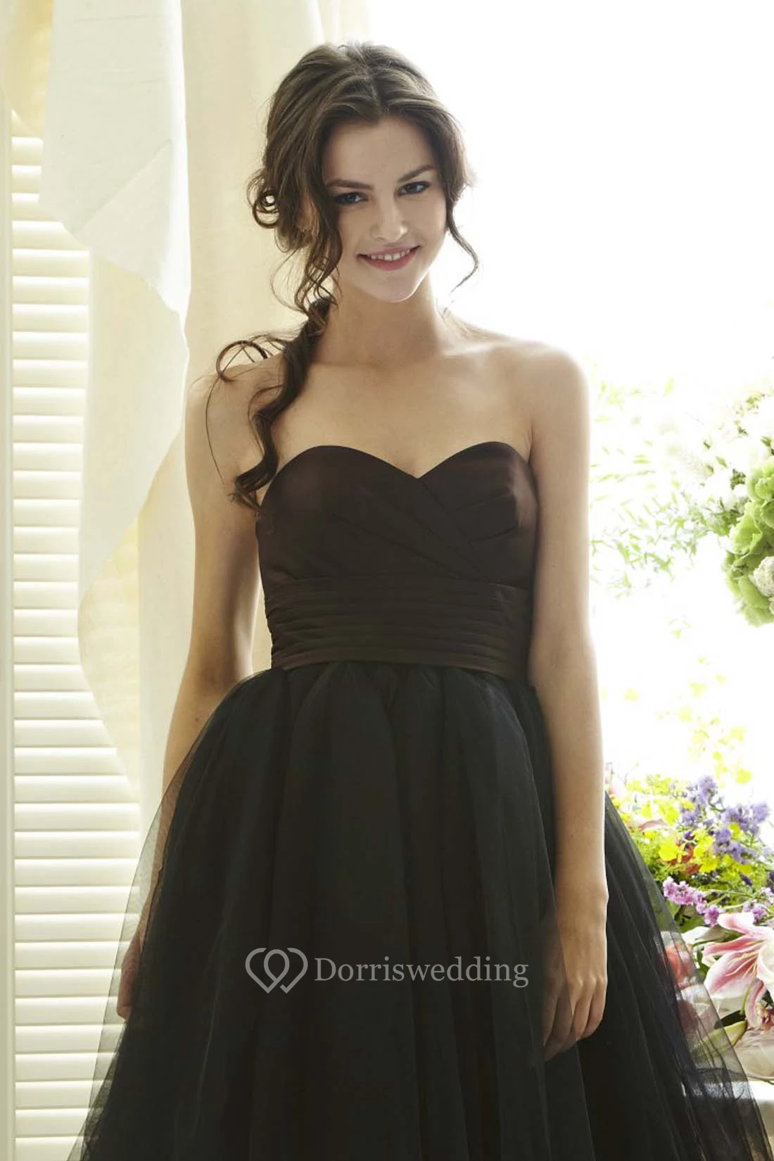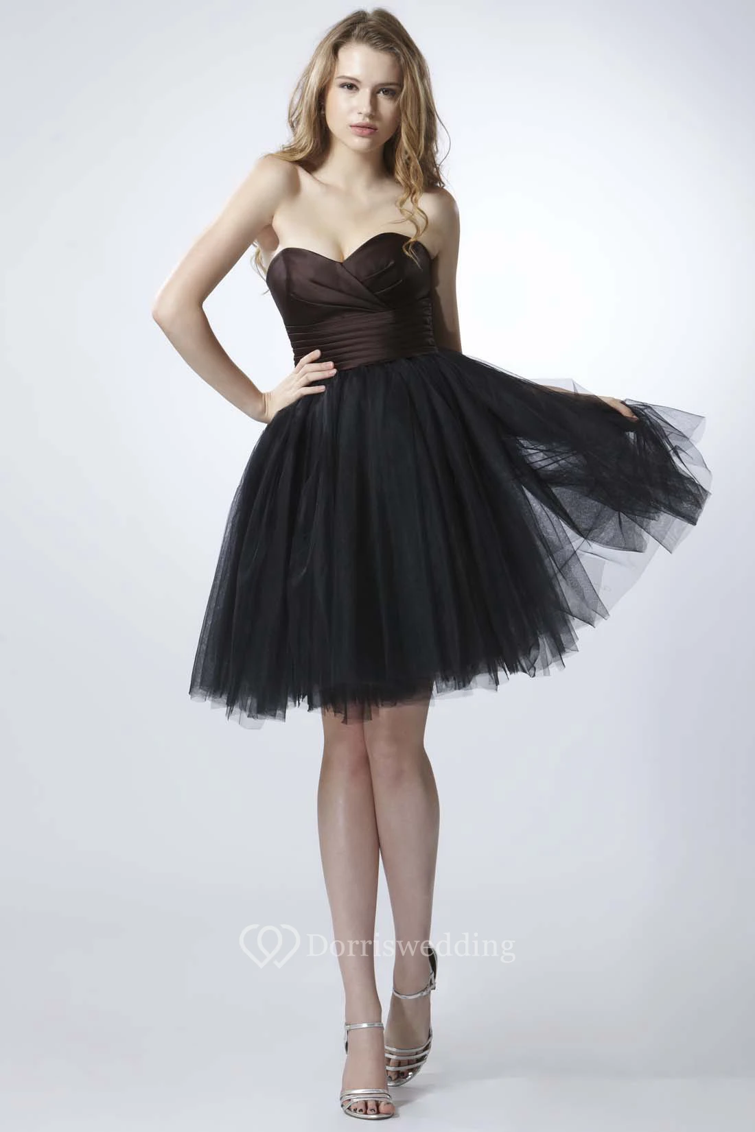 A-Line Short Sweetheart Criss-Cross Sleeveless Tulle Bridesmaid Dress