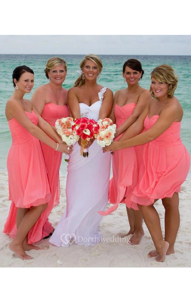 A-line Short Sweetheart Sleeveless Bell Zipper Chiffon Dress