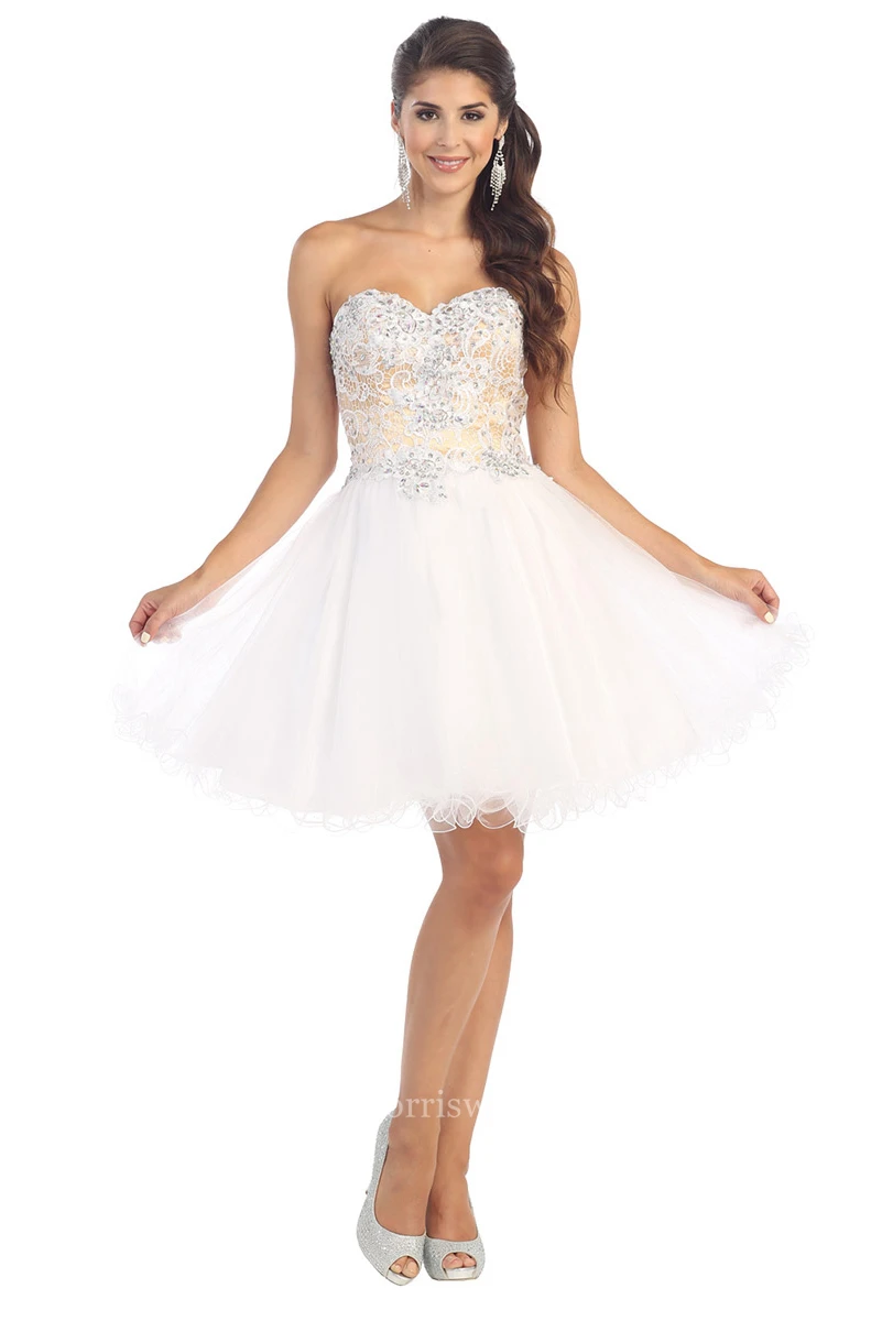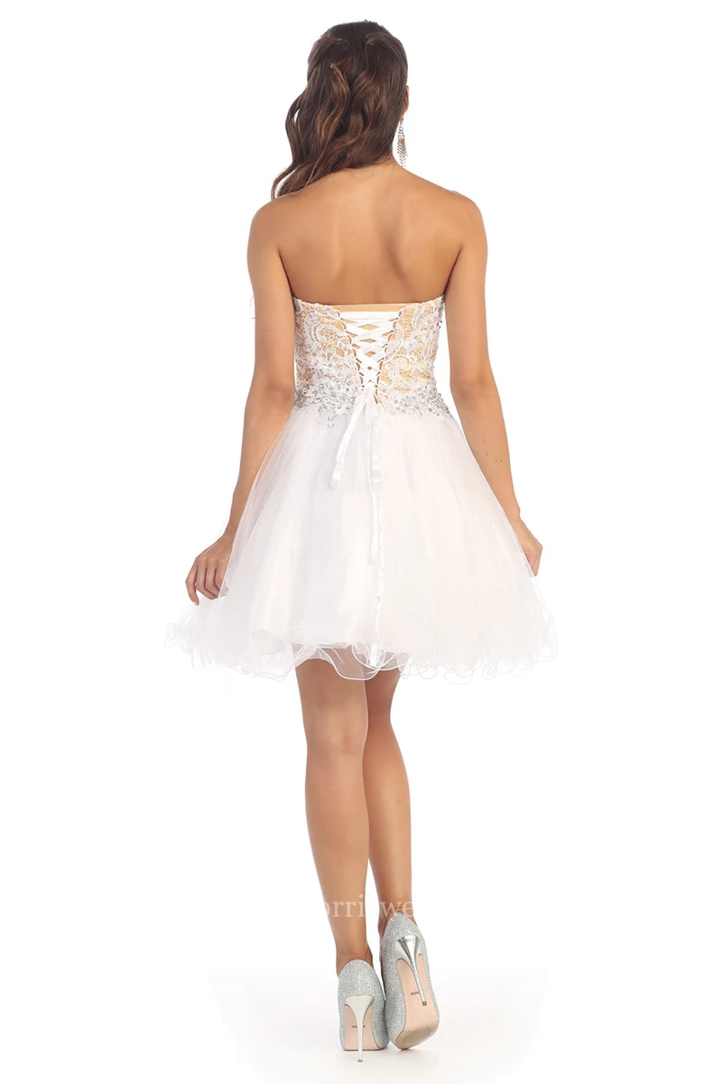 A-Line Short Sweetheart Sleeveless Tulle Lace-Up Dress With Appliques And Lace