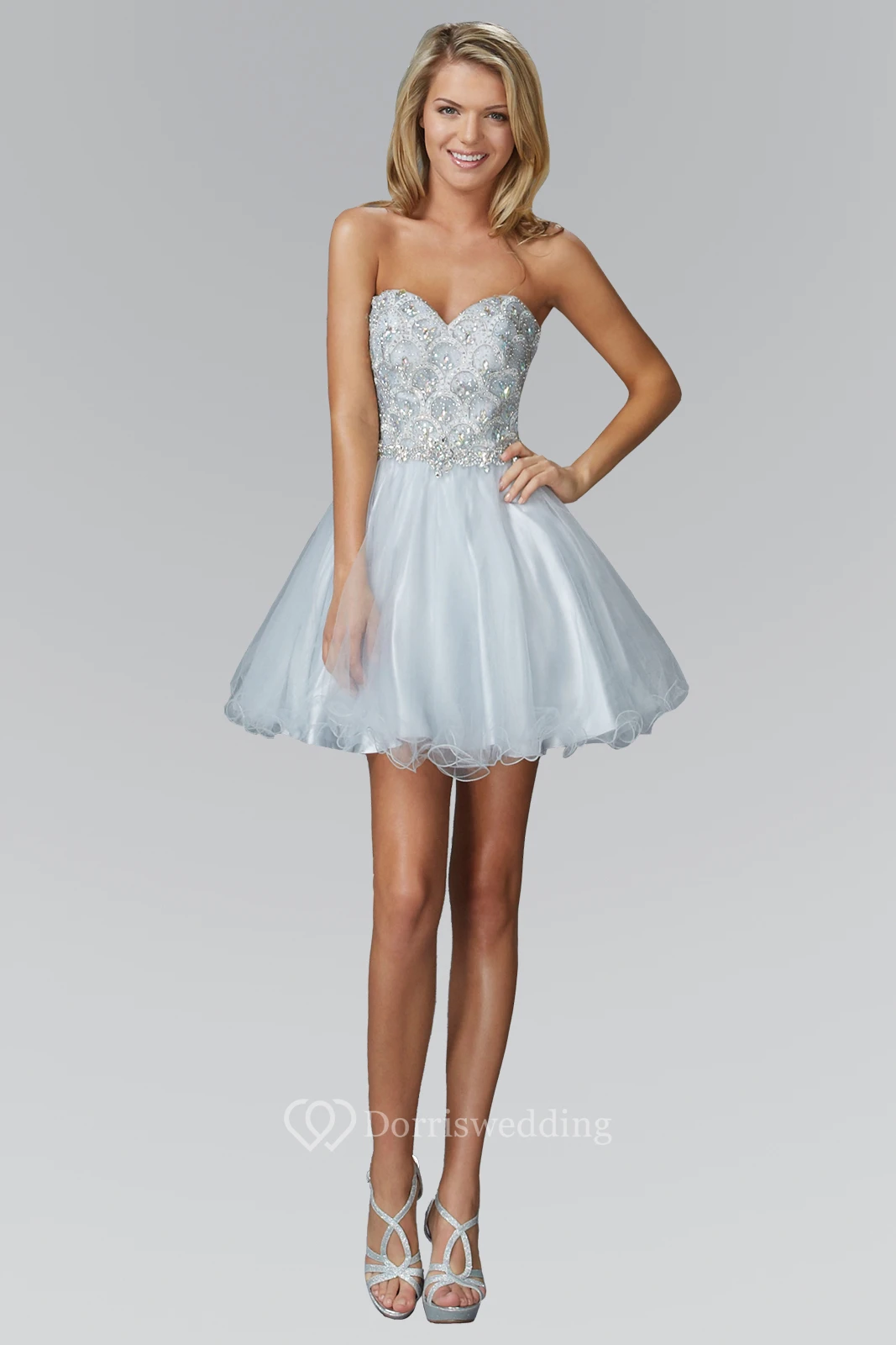 A-Line Short Sweetheart Sleeveless Tulle Satin Dress With Beading
