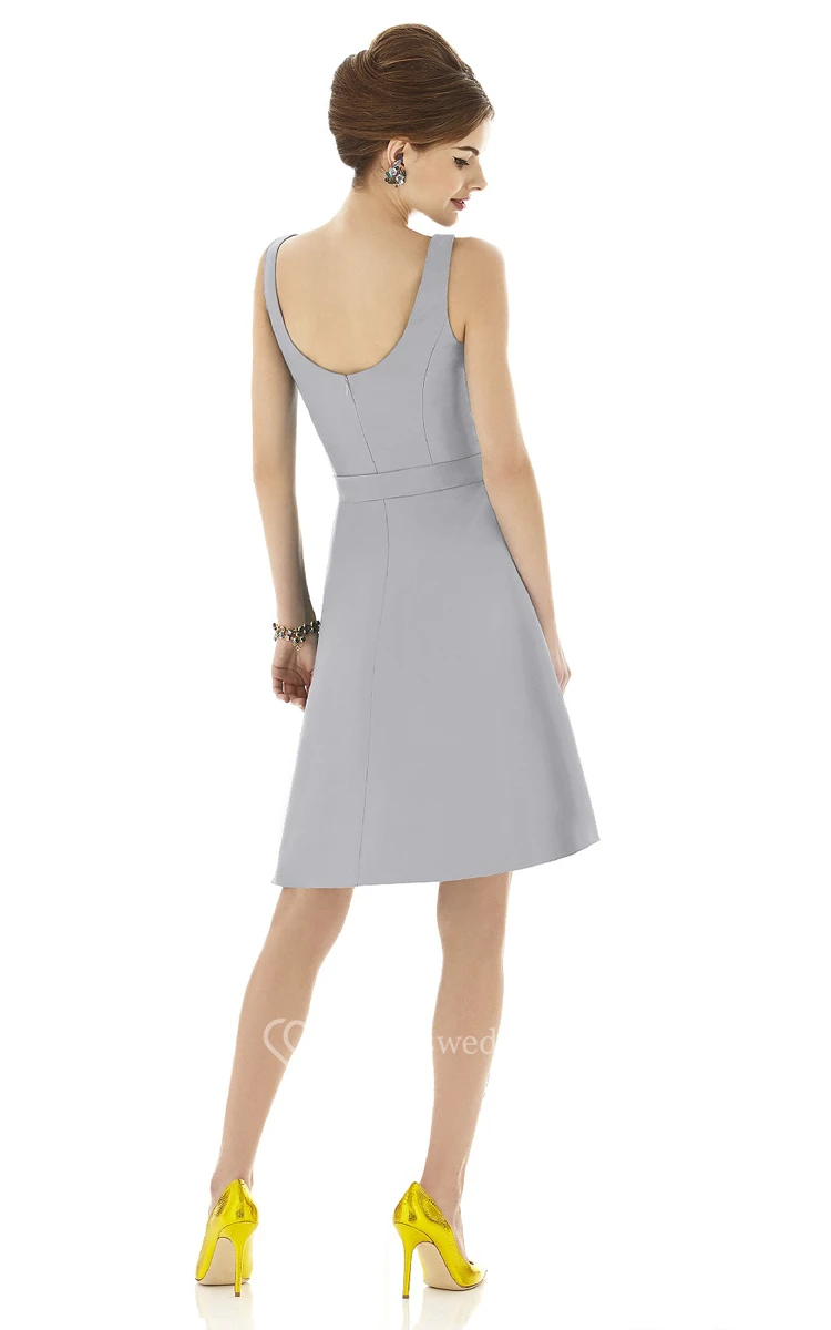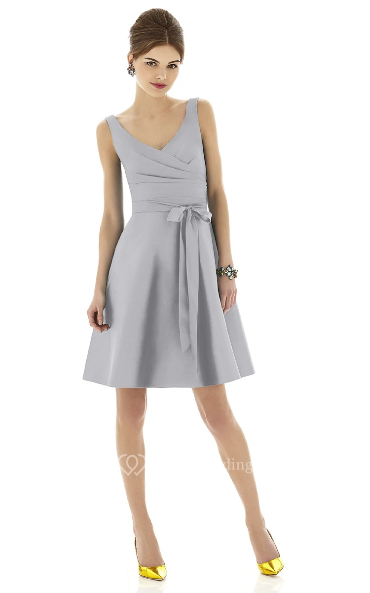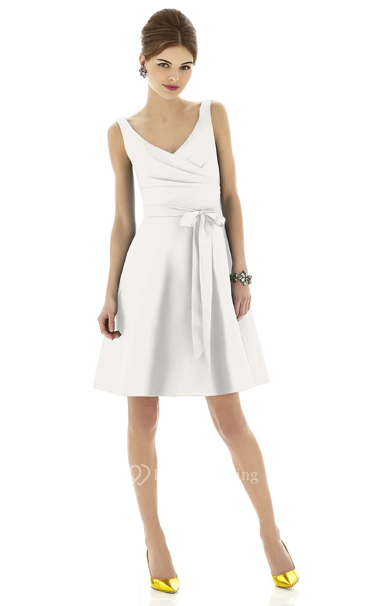 A-Line Short V-Neck Chic Sleeveless Dress With Bow Sash