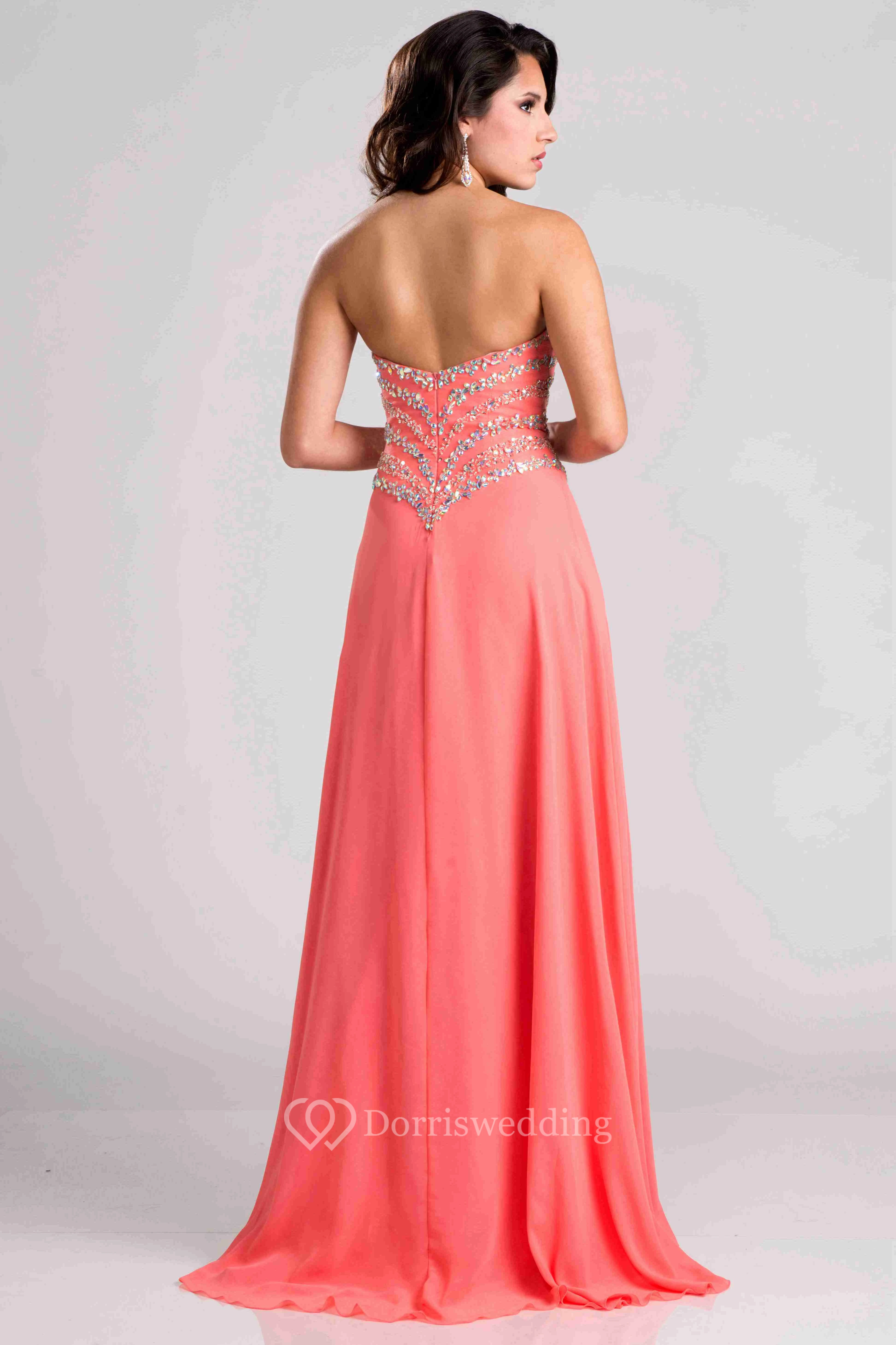A-Line Side Slit Chiffon Sweetheart Prom Dress With Beadwork