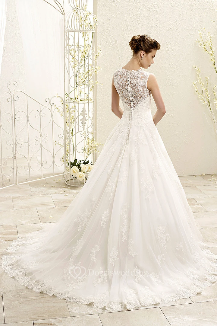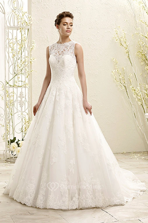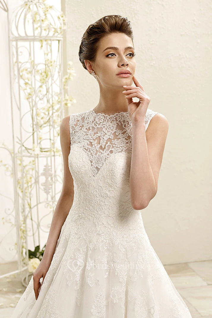 A-Line Sleeveless Appliqued High-Neck Maxi Lace Wedding Dress