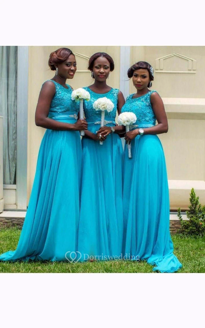 A-line Sleeveless Appliques Zipper Chiffon Lace Dress
