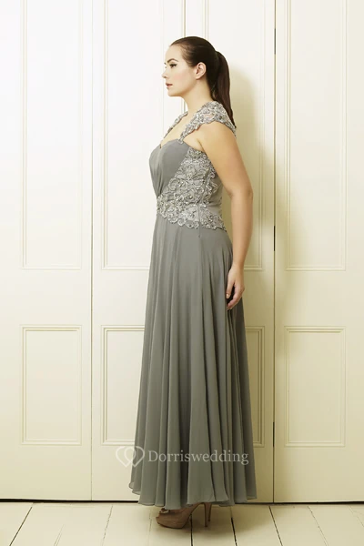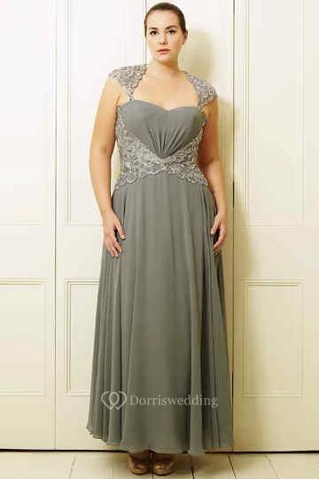 A-Line Sleeveless Beaded Ankle-Length Queen-Anne Chiffon Plus Size Prom Dress