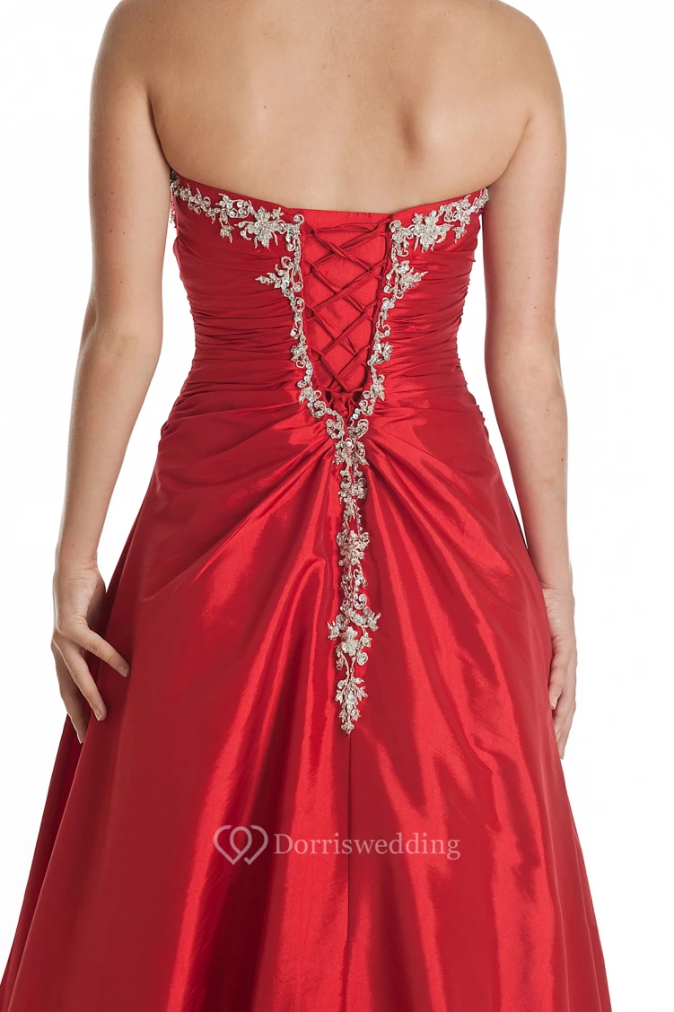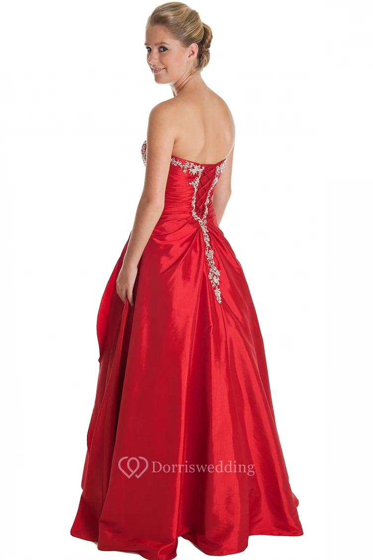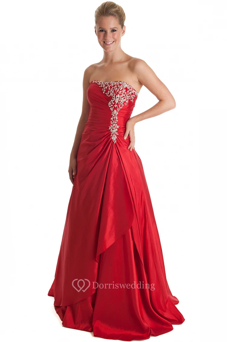 A-Line Sleeveless Beaded Strapless Floor-Length Satin Prom Dress With Draping