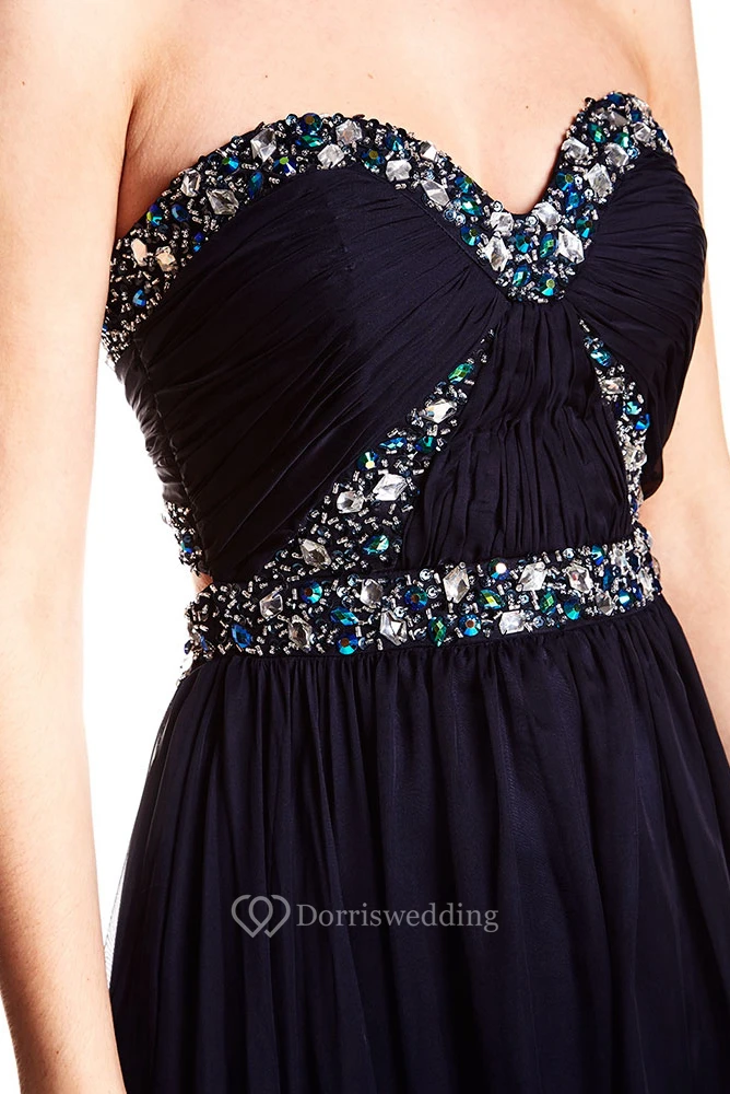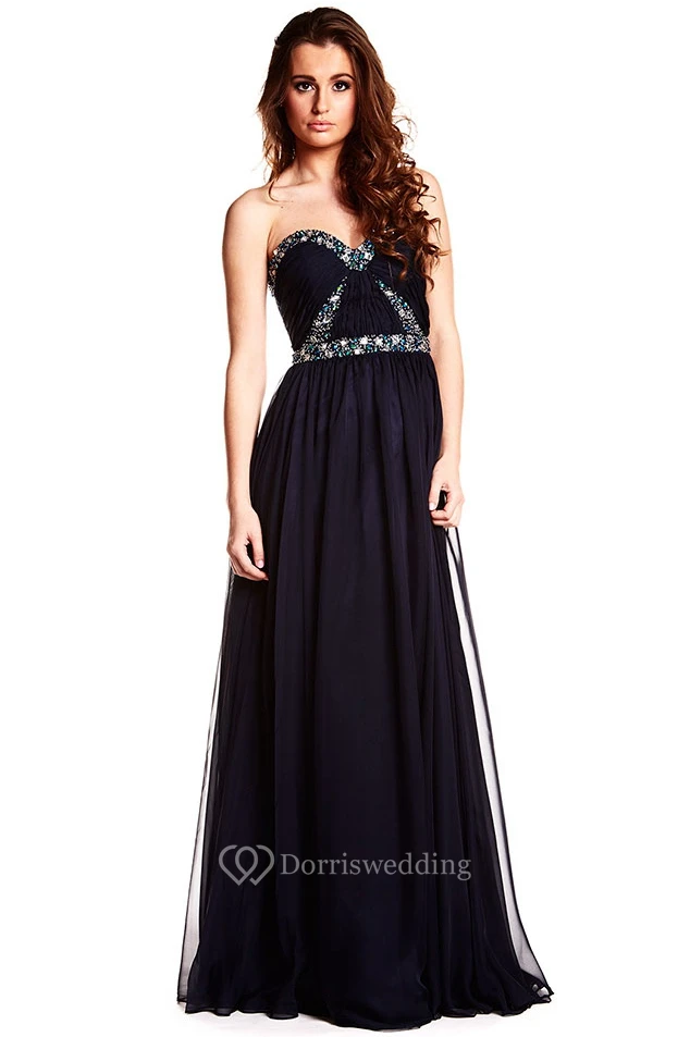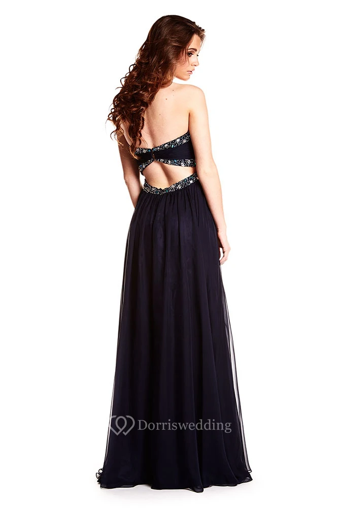 A-Line Sleeveless Beaded Sweetheart Floor-Length Chiffon Prom Dress With Backless Style