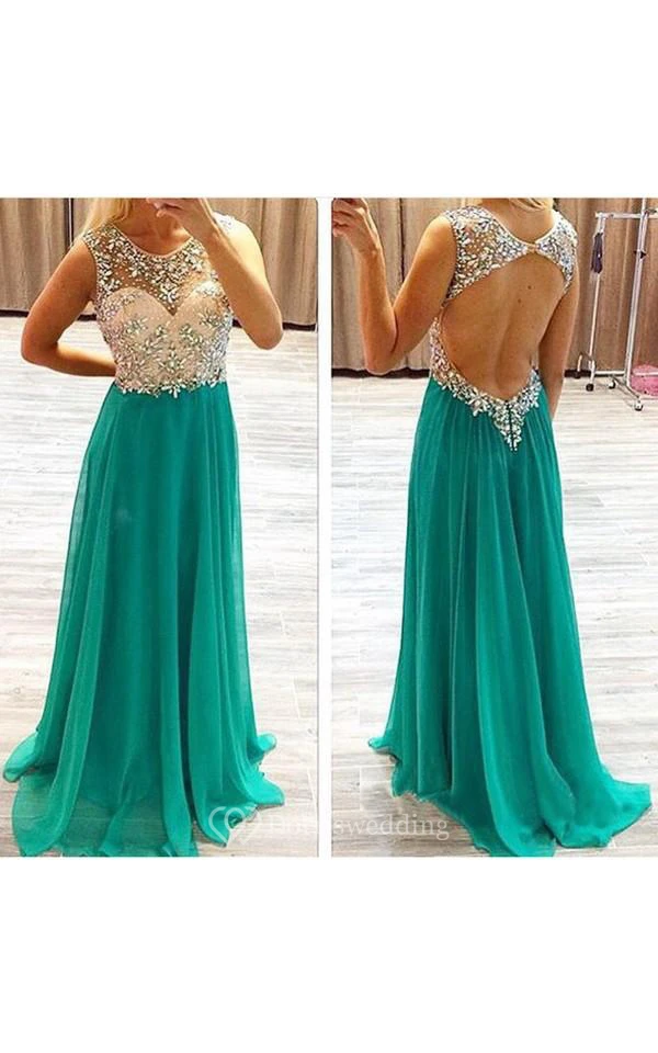 A-line Sleeveless Beading Chiffon Sweep Train Dresses