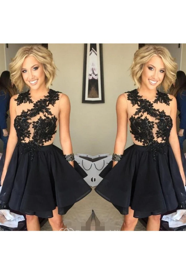 A-line Sleeveless Chiffon Lace Jewel Short Mini Homecoming Dress