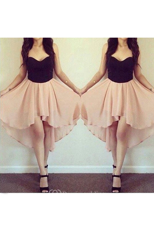A-line Sleeveless Chiffon Sweetheart High-low Homecoming Dress