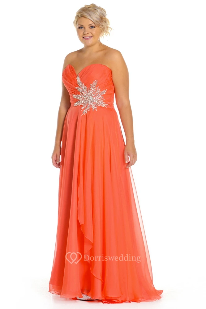 A-Line Sleeveless Criss-Cross Sweetheart Long Chiffon Prom Dress With Draping And Appliques