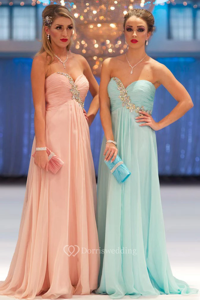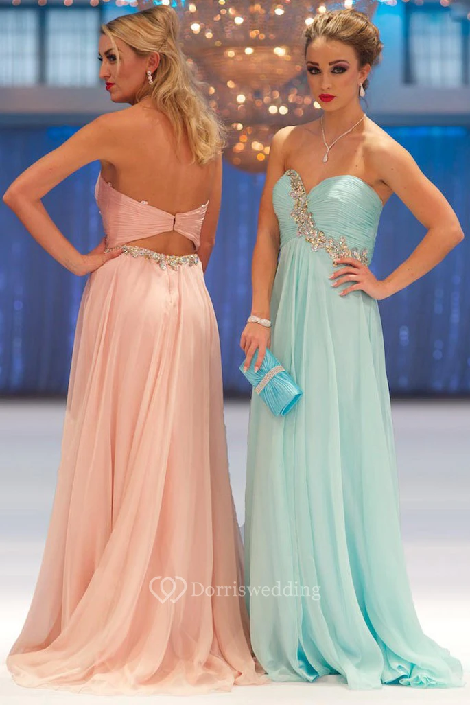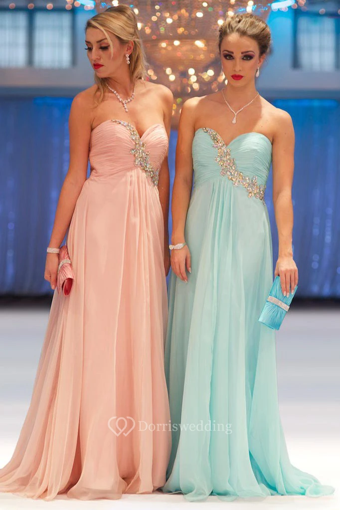 A-Line Sleeveless Empire Floor-Length Sweetheart Ruched Chiffon Prom Dress With Beading And Pleats