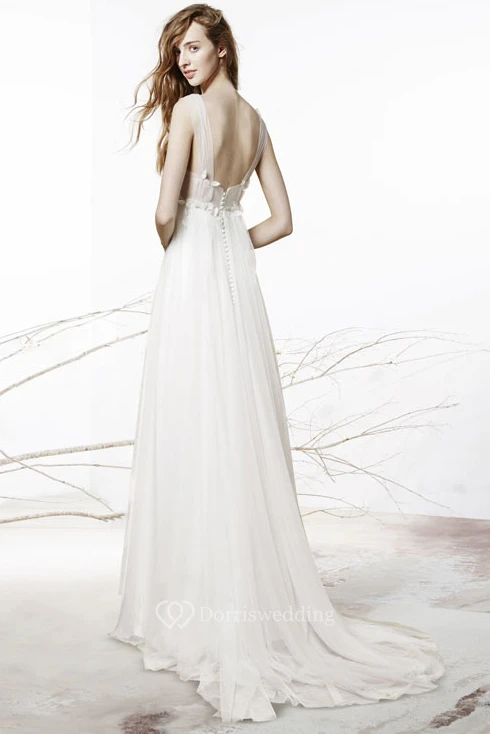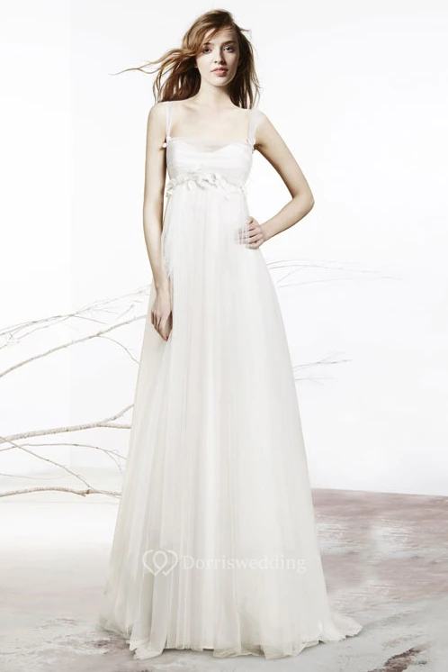 A-Line Sleeveless Empire Floral Floor-Length Tulle Wedding Dress With Low-V Back And Draping