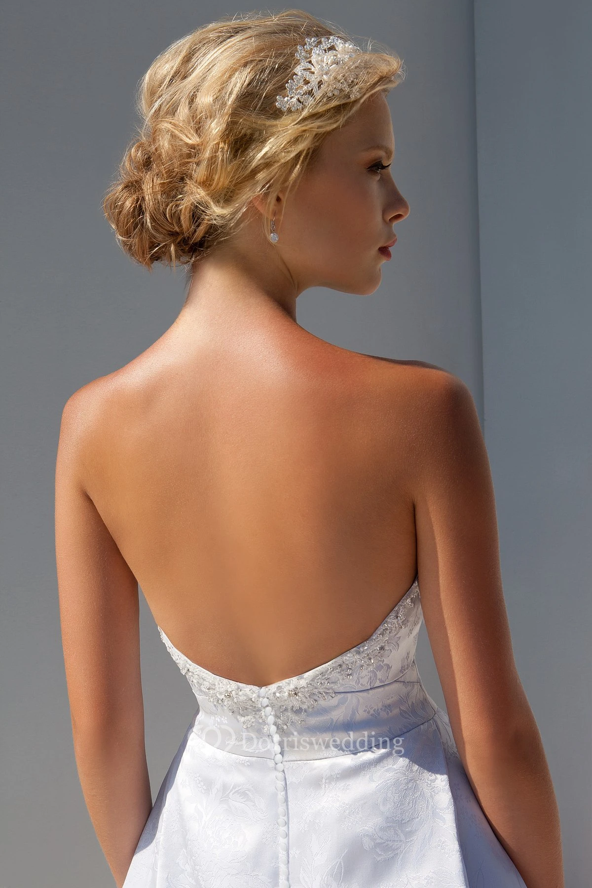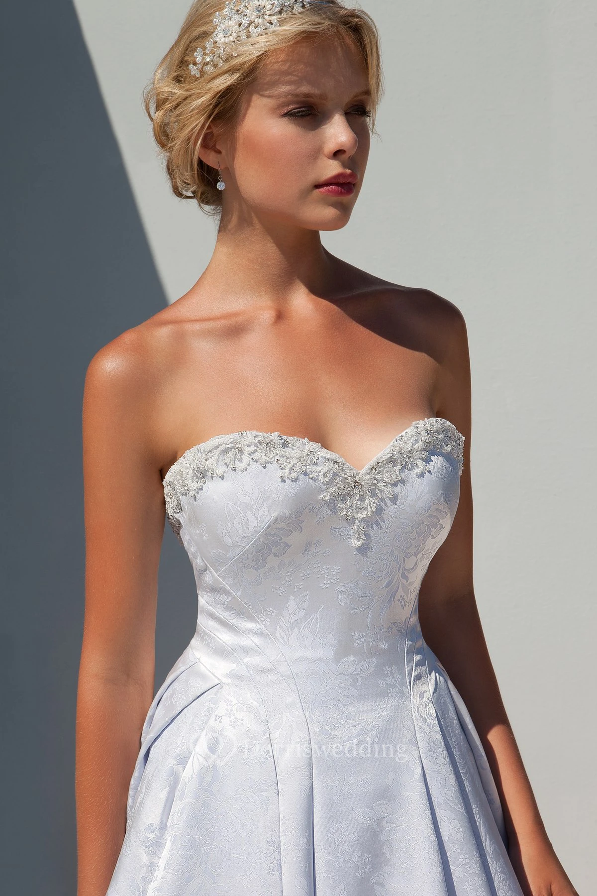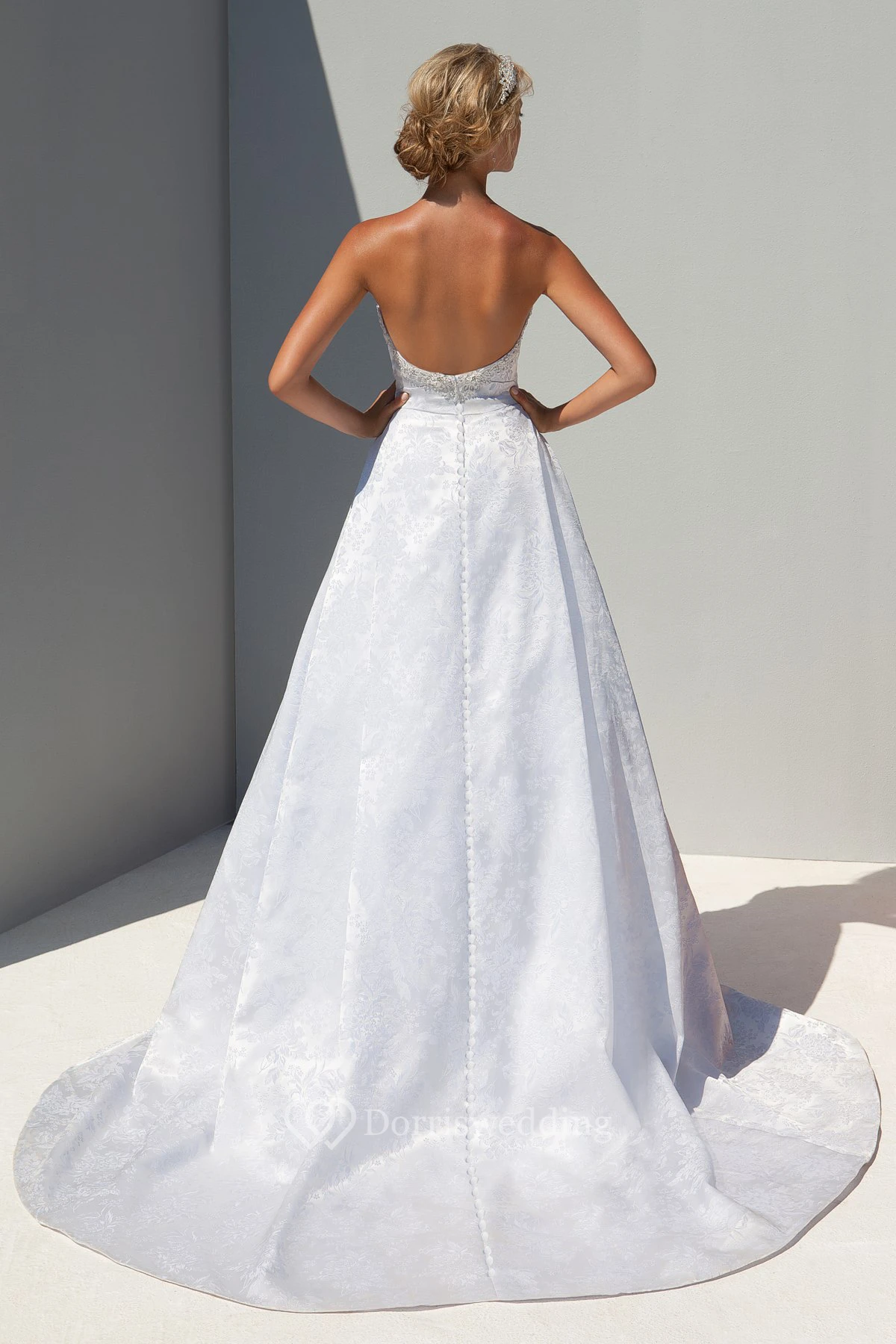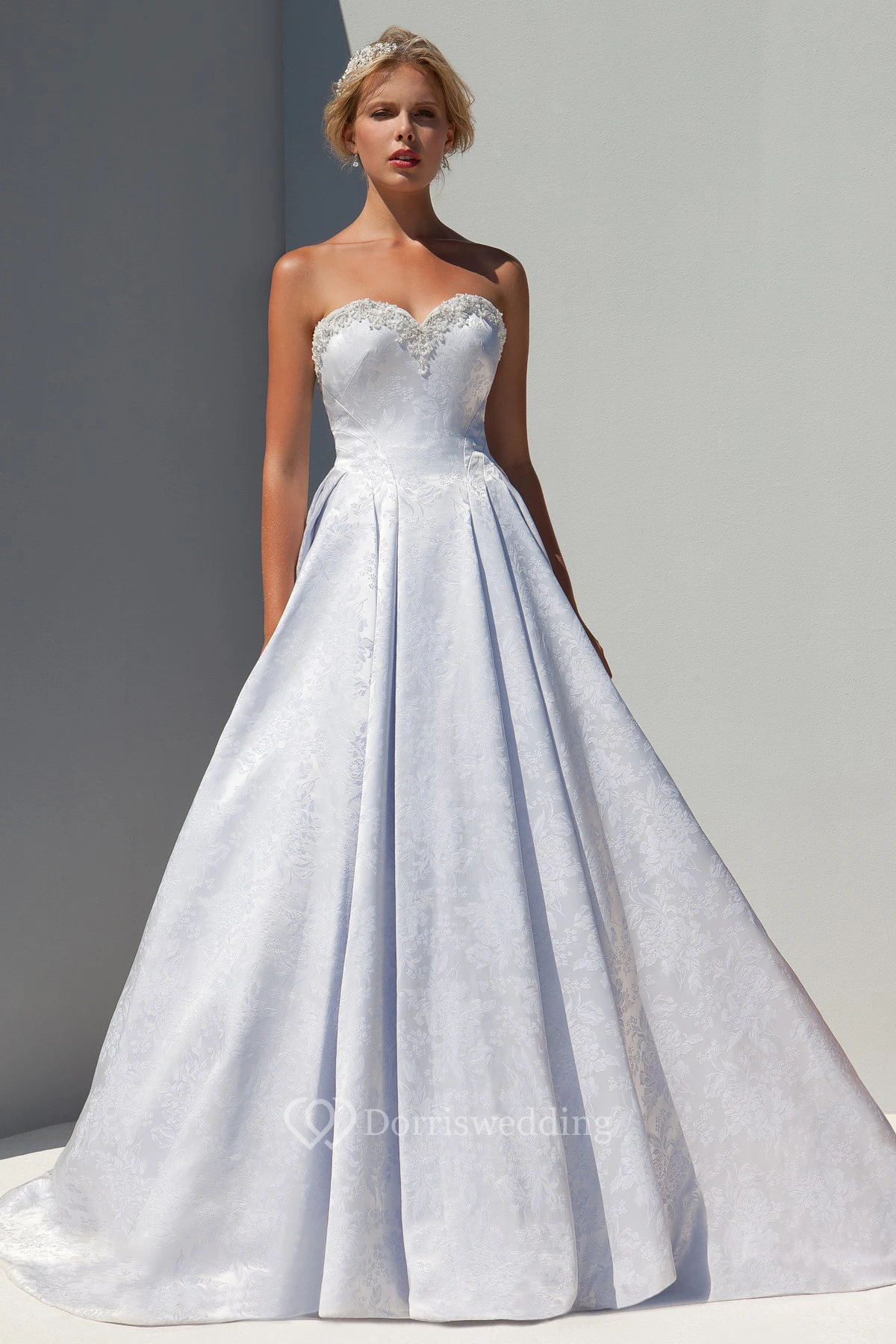 A-Line Sleeveless Floor-Length Beaded Sweetheart Satin Wedding Dress