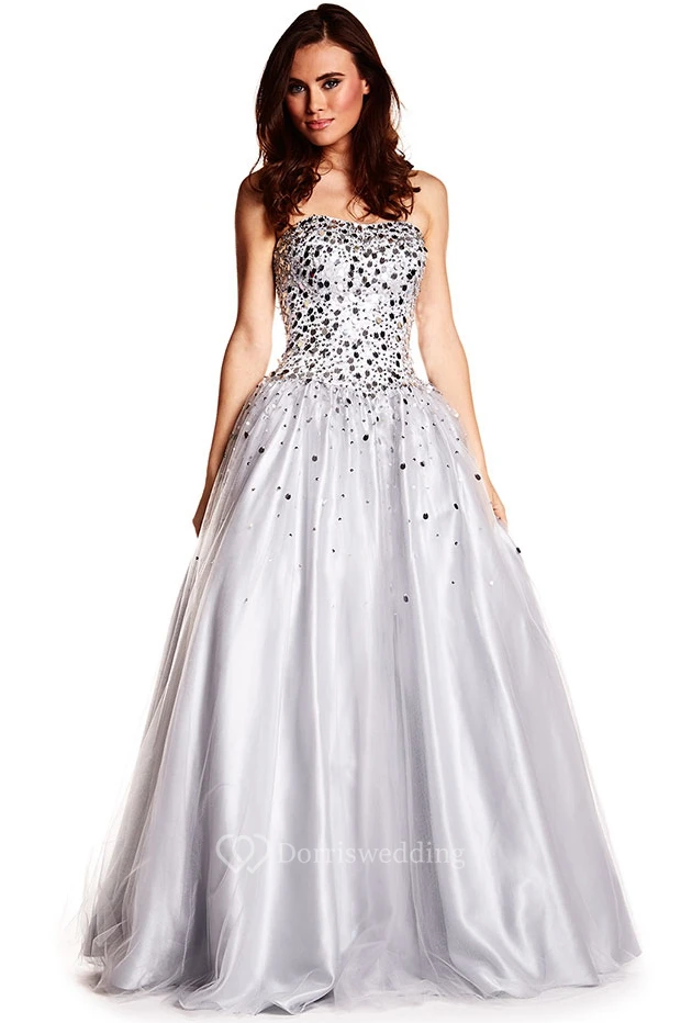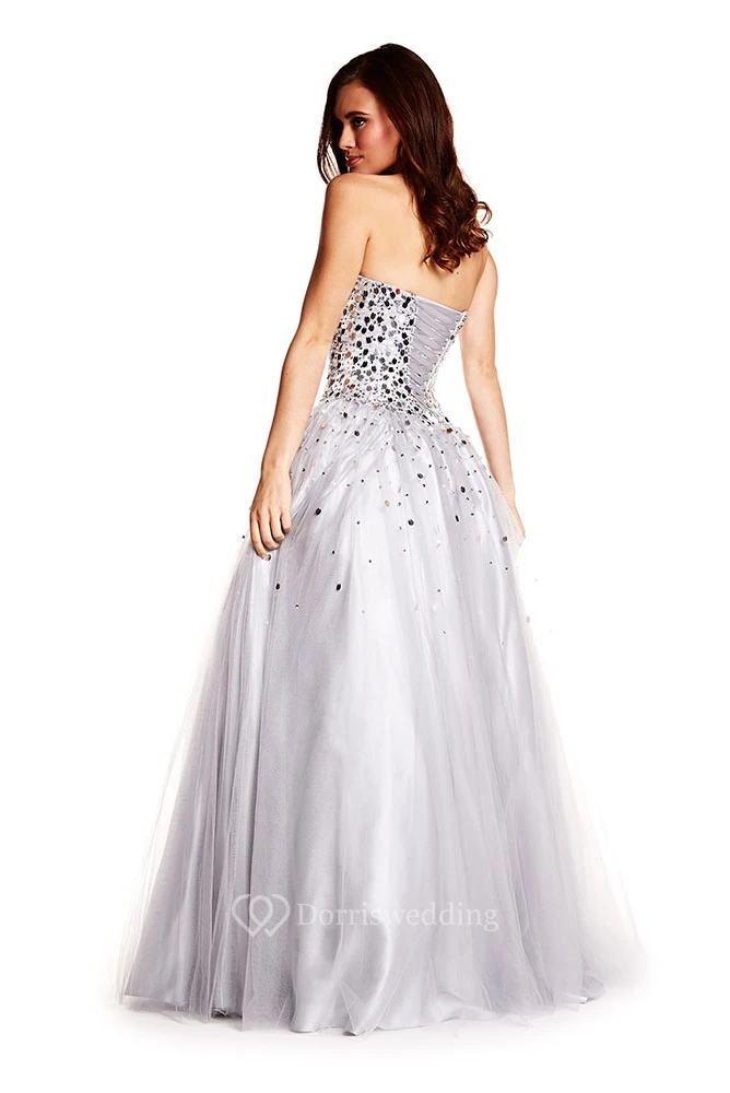 A-Line Sleeveless Floor-Length Sequined Sweetheart Tulle Prom Dress