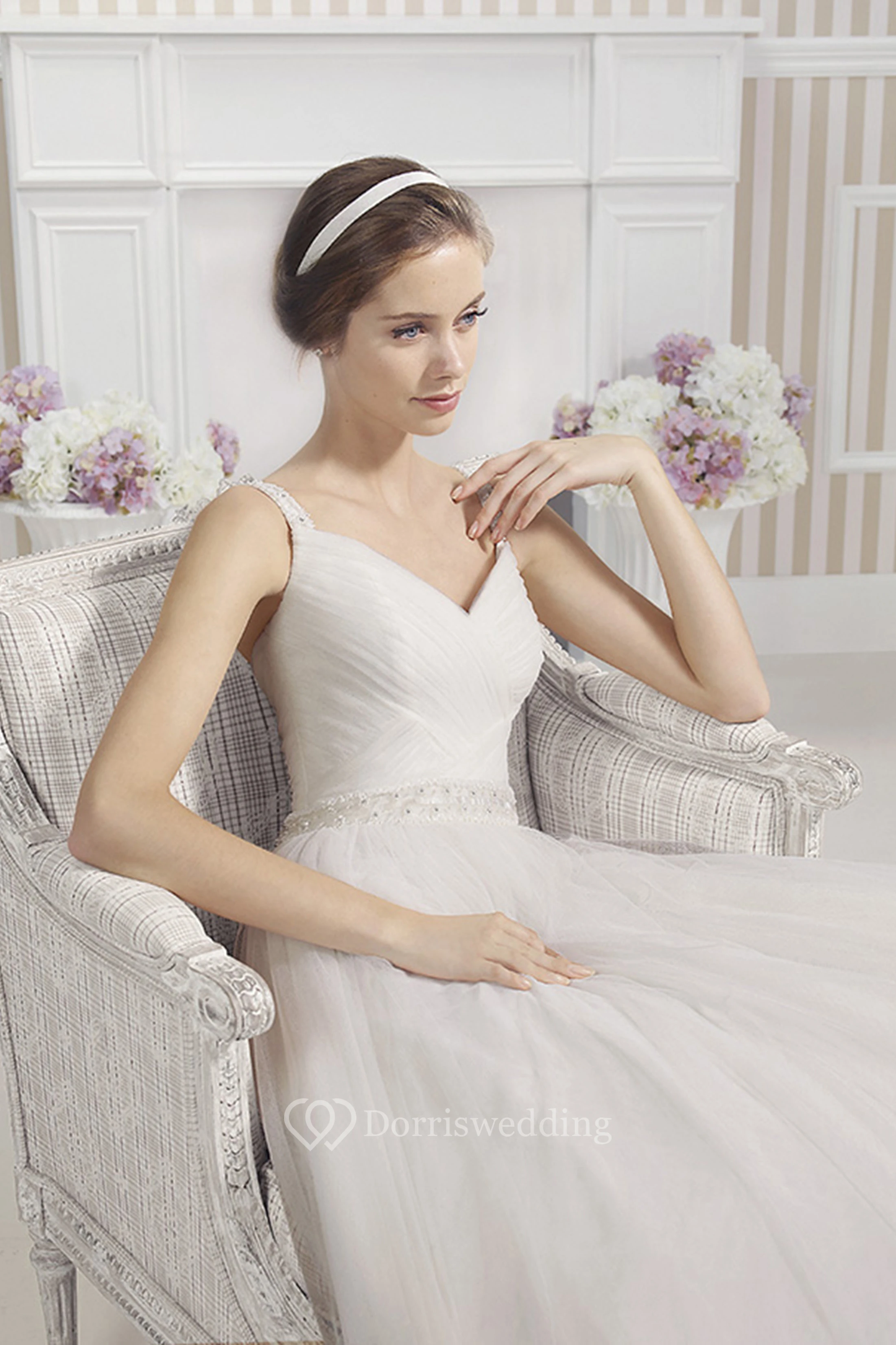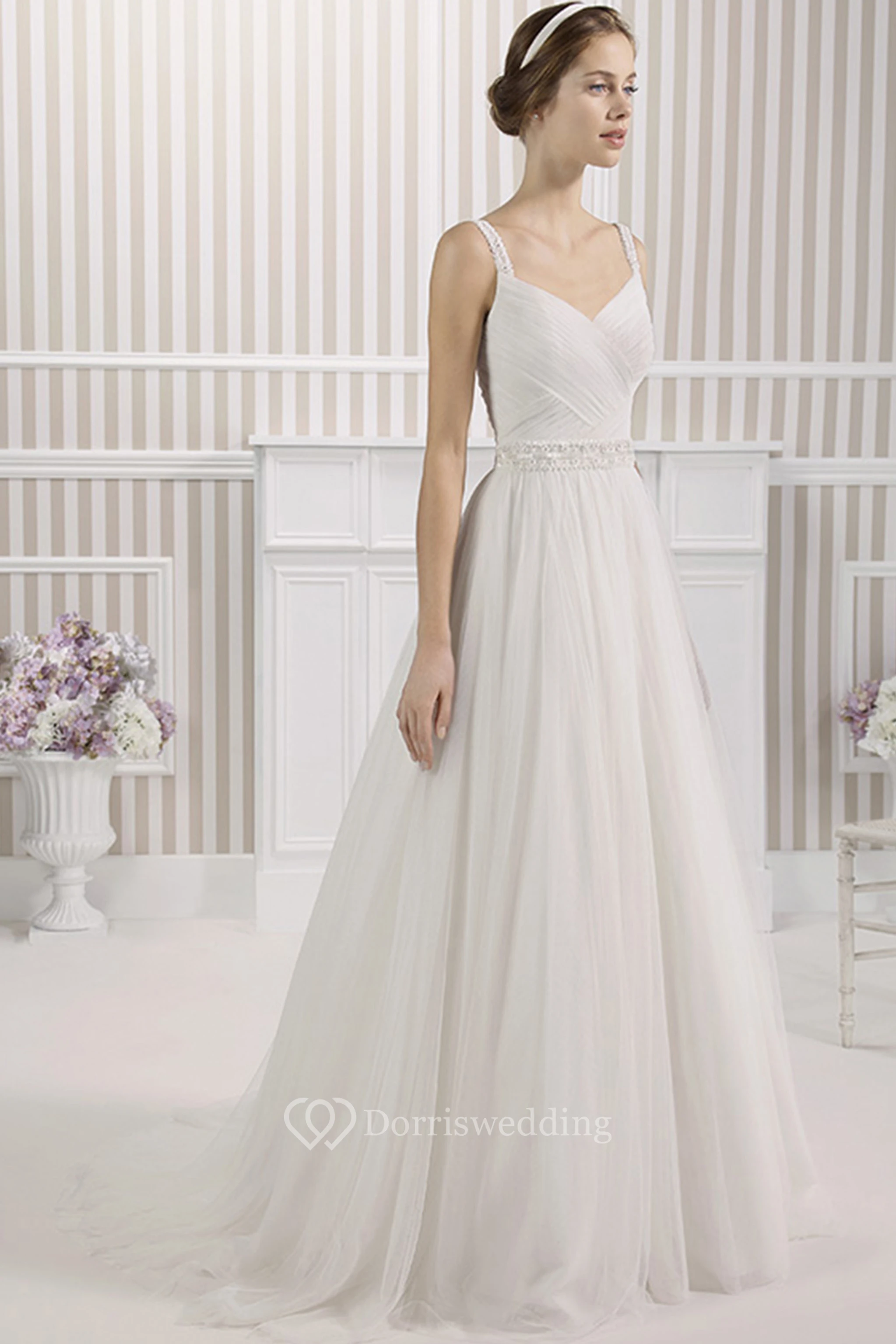 • Hemline/Train: Floor-length