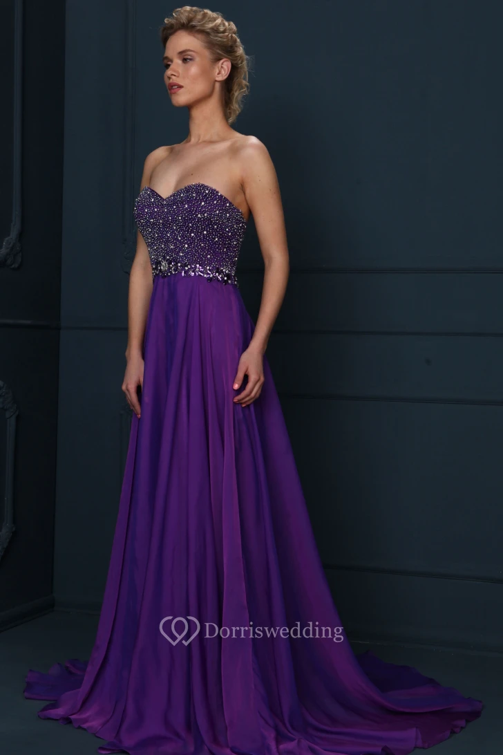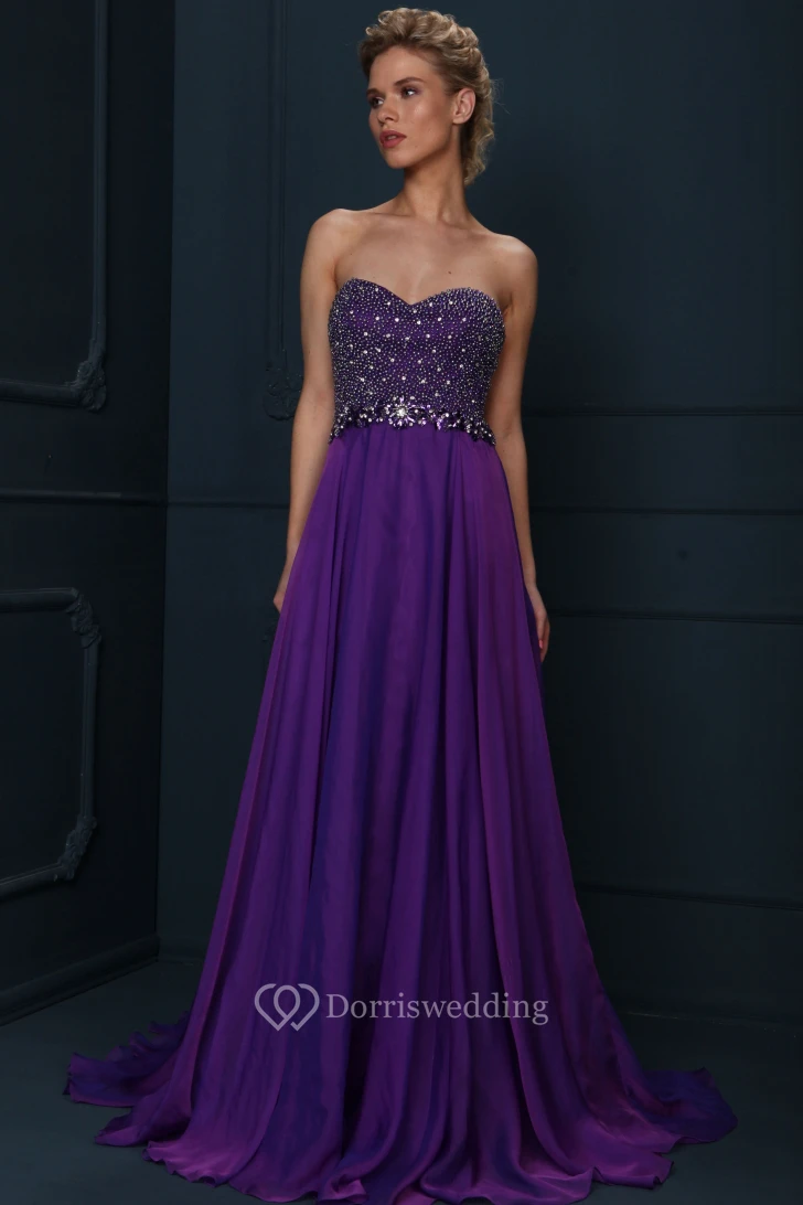 A-Line Sleeveless Floor-Length Sweetheart Beaded Jersey Evening Dress With Pleats