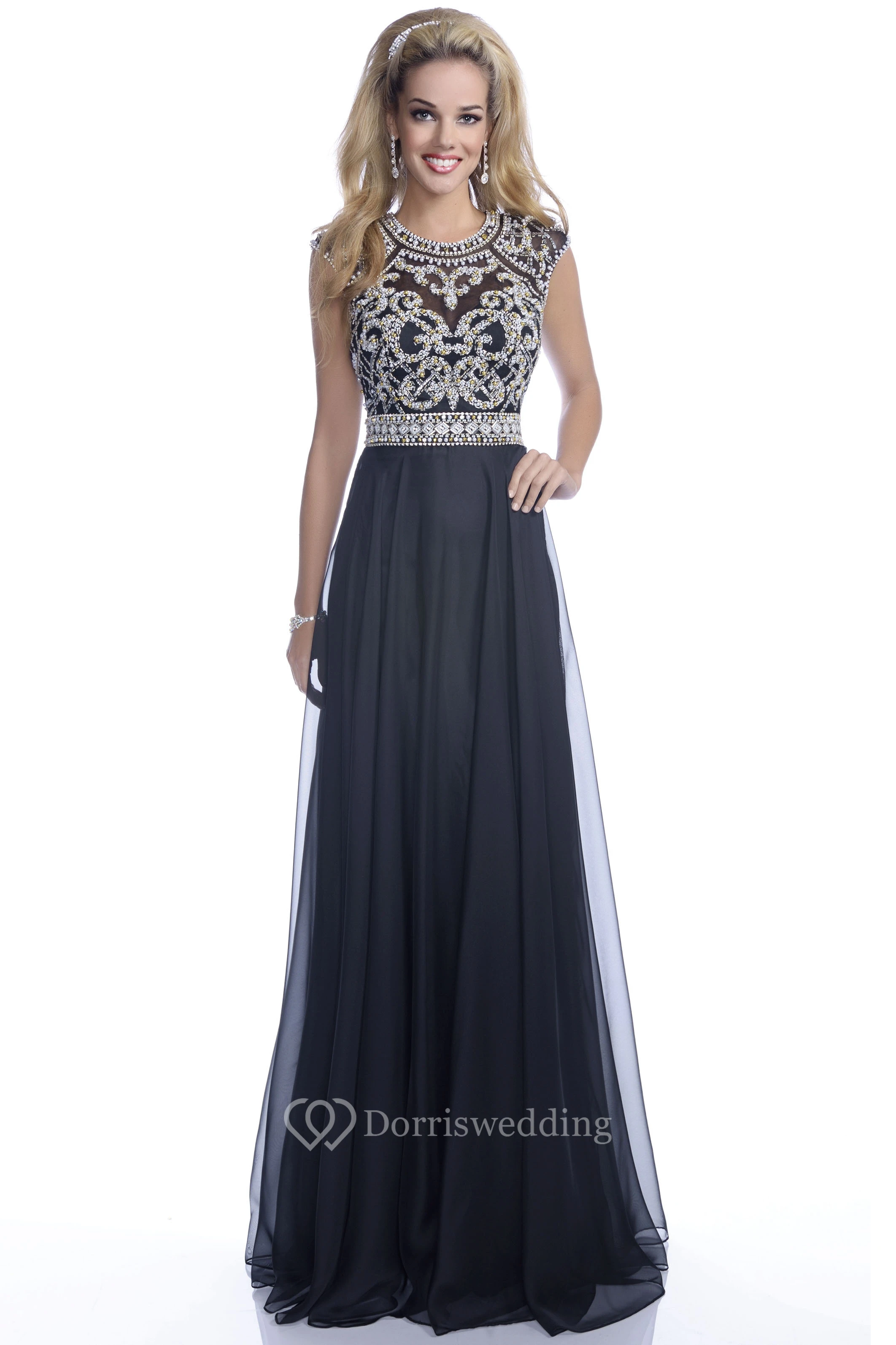 A-Line Sleeveless Keyhole Back Chiffon Prom Dress Featuring Crystal Bodice