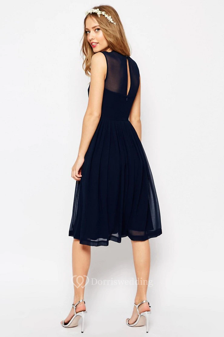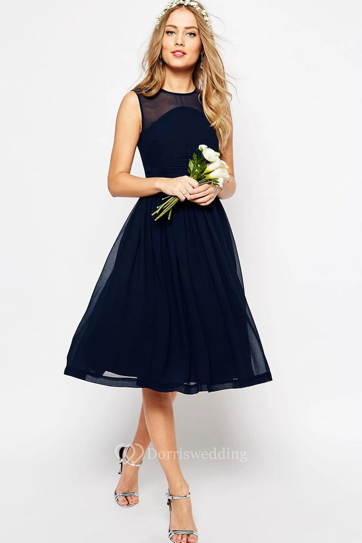 A-Line Sleeveless Knee-Length Pleated Scoop-Neck Chiffon Bridesmaid Dress