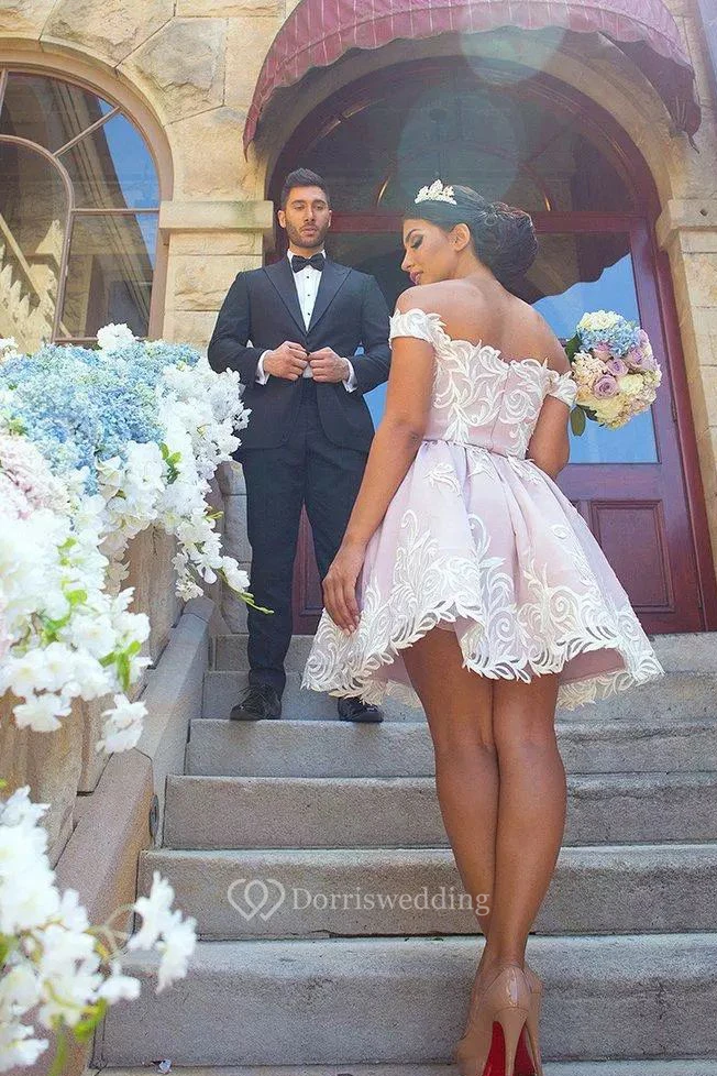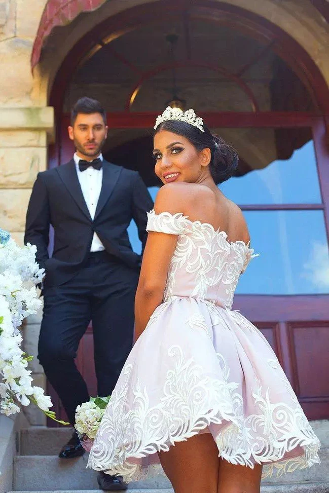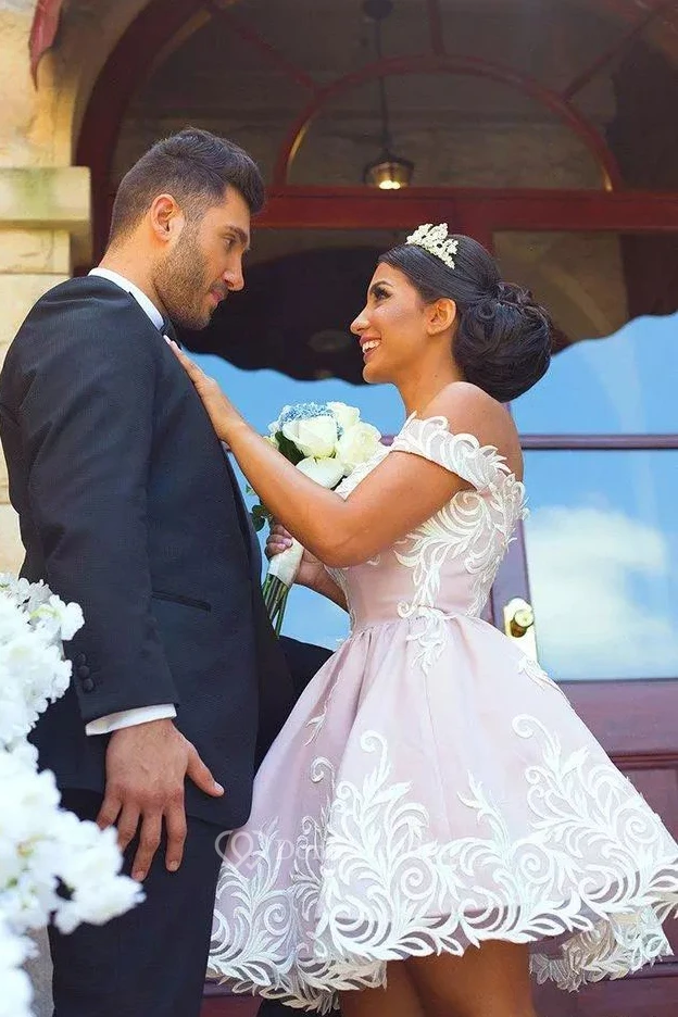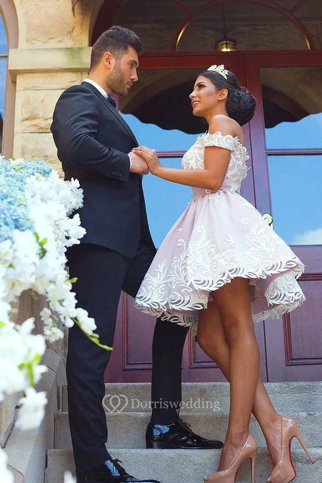A-line Sleeveless Lace Off-the-shoulder Zipper Short Mini Homecoming Dress