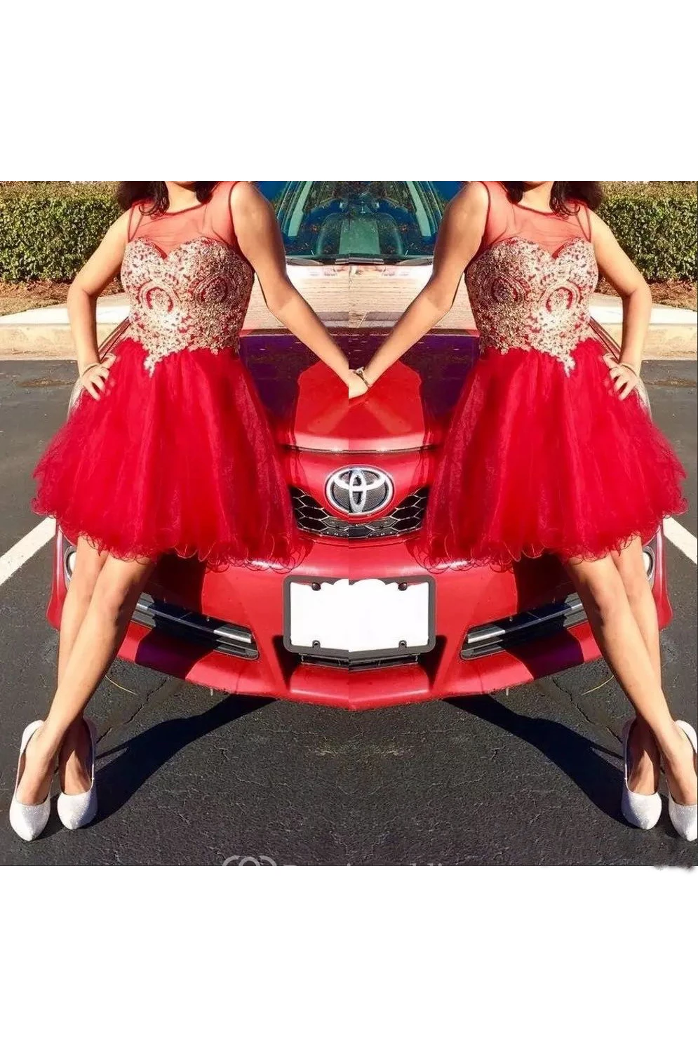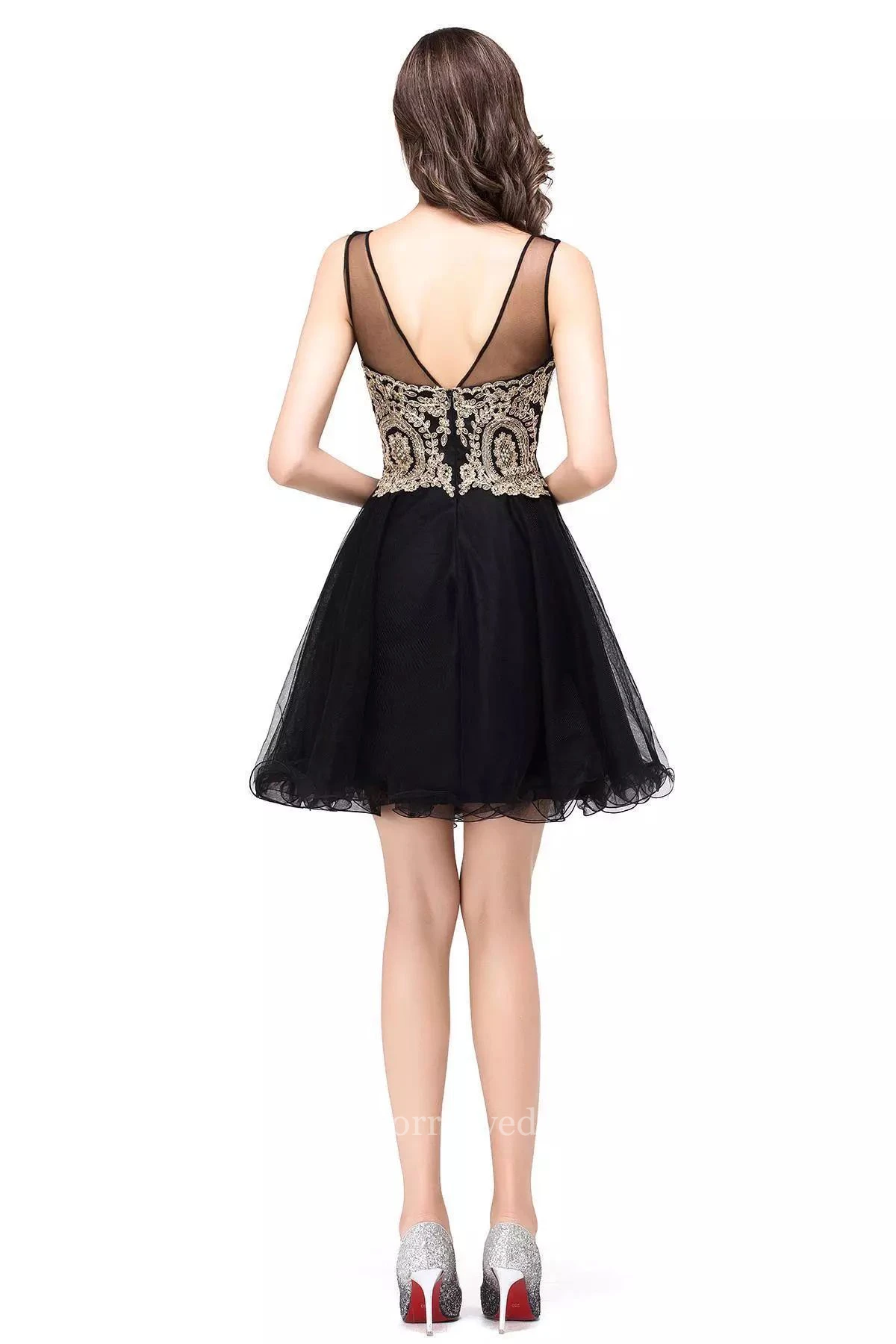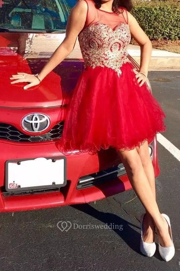 A-line Sleeveless Lace Tulle Bateau Zipper Low-V Back Short Mini Homecoming Dress