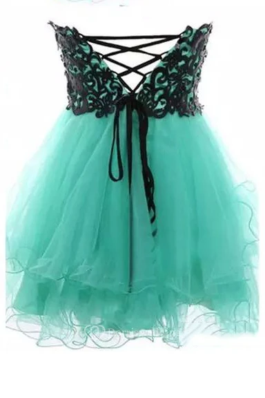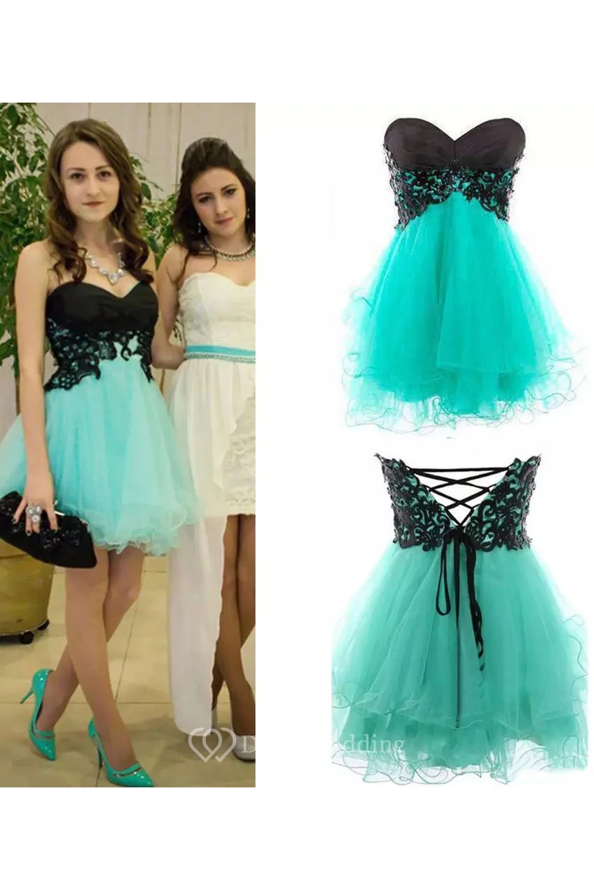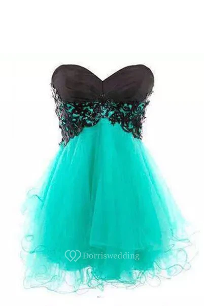 A-line Sleeveless Lace Tulle Sweetheart Lace-up Short Mini Homecoming Dress