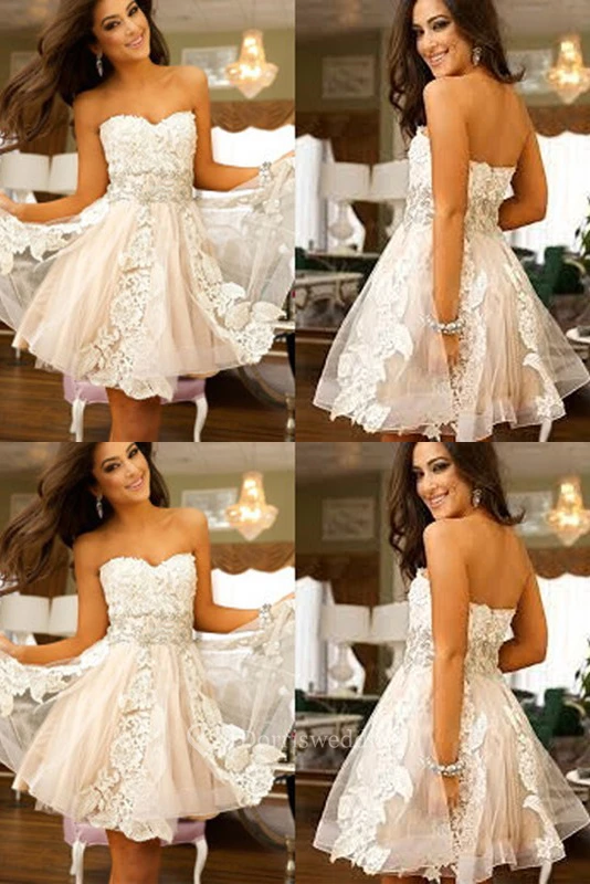 A-line Sleeveless Lace Tulle Sweetheart Open Back Zipper Short Mini Homecoming Dress