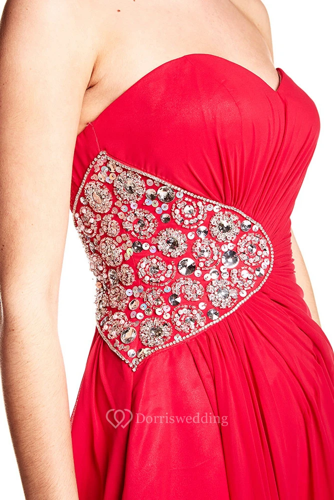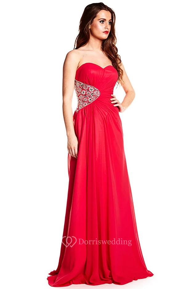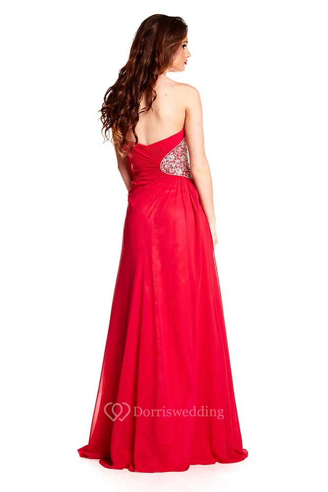 A-Line Sleeveless Long Sweetheart Split-Front Chiffon Prom Dress With Backless Style And Beading