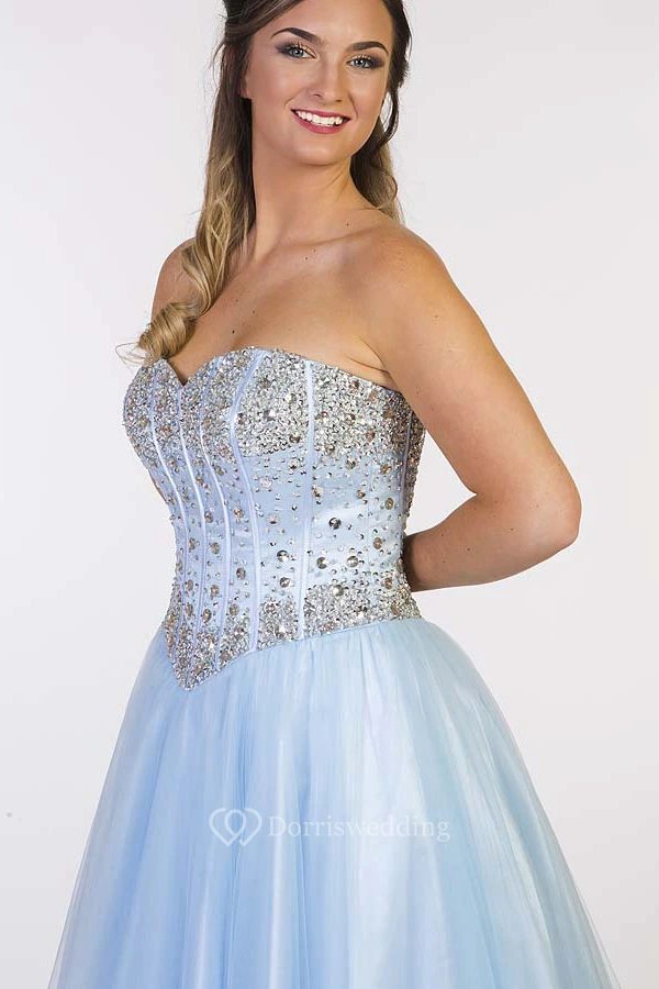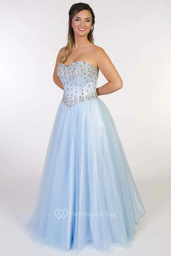 A-Line Sleeveless Maxi Beaded Sweetheart Tulle Prom Dress