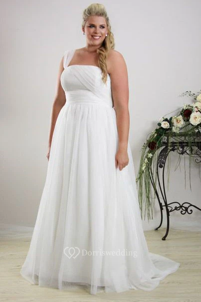A-Line Sleeveless One-Shoulder Chiffon Plus Size Wedding Dress With Ruching