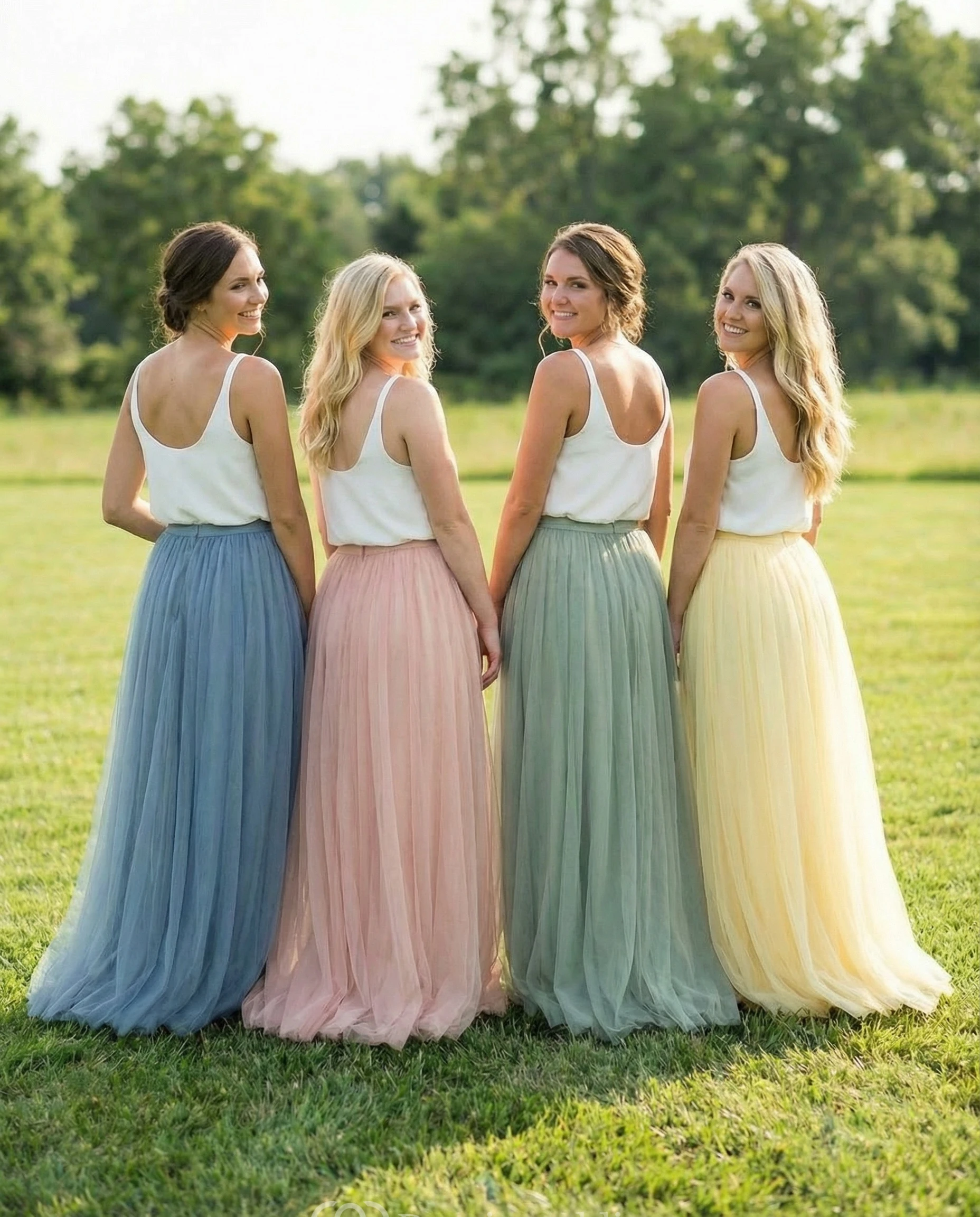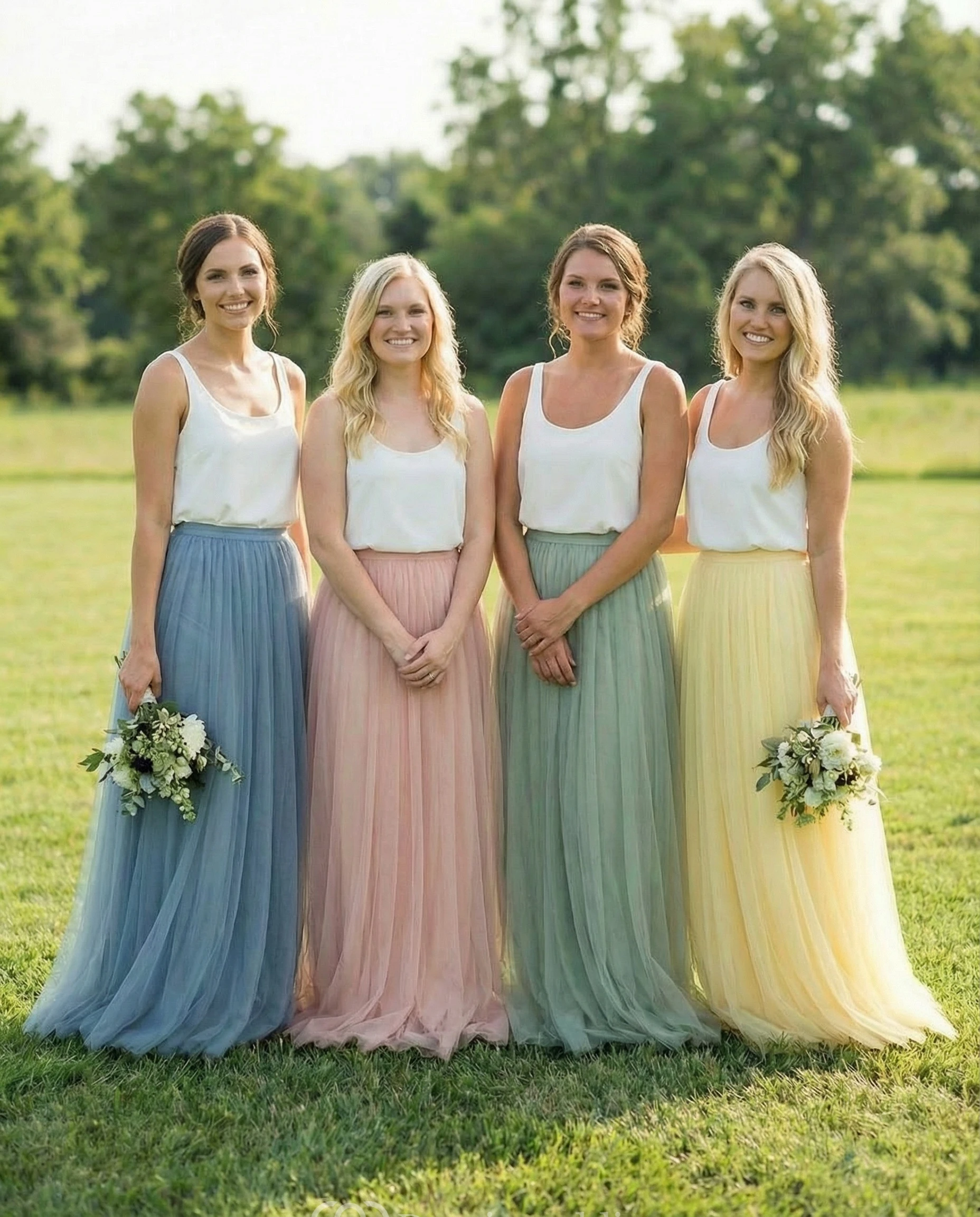 A-Line Sleeveless Pleated Tulle Bridesmaid Dress