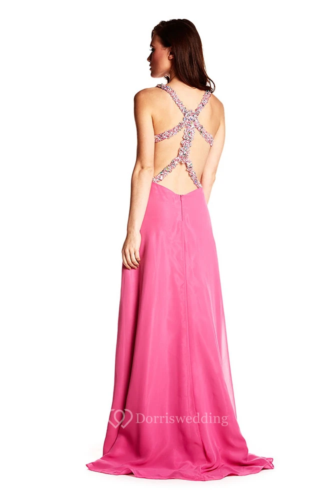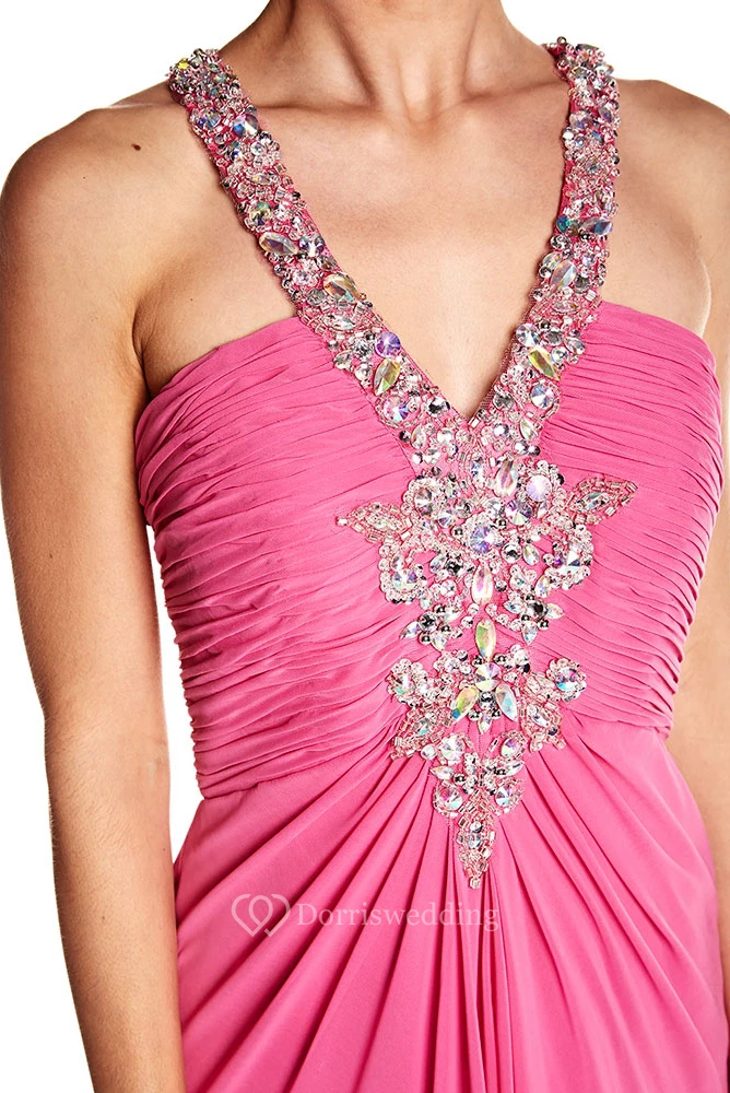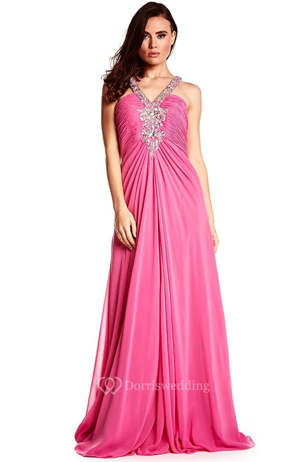 A-Line Sleeveless Ruched Floor-Length Empire Chiffon Prom Dress With Beading
