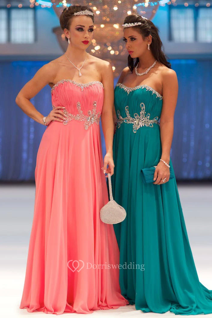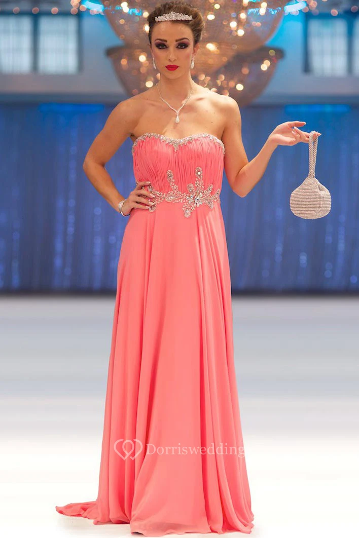 A-Line Sleeveless Ruched Sweetheart Long Chiffon Prom Dress With Beading