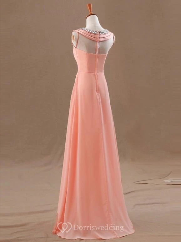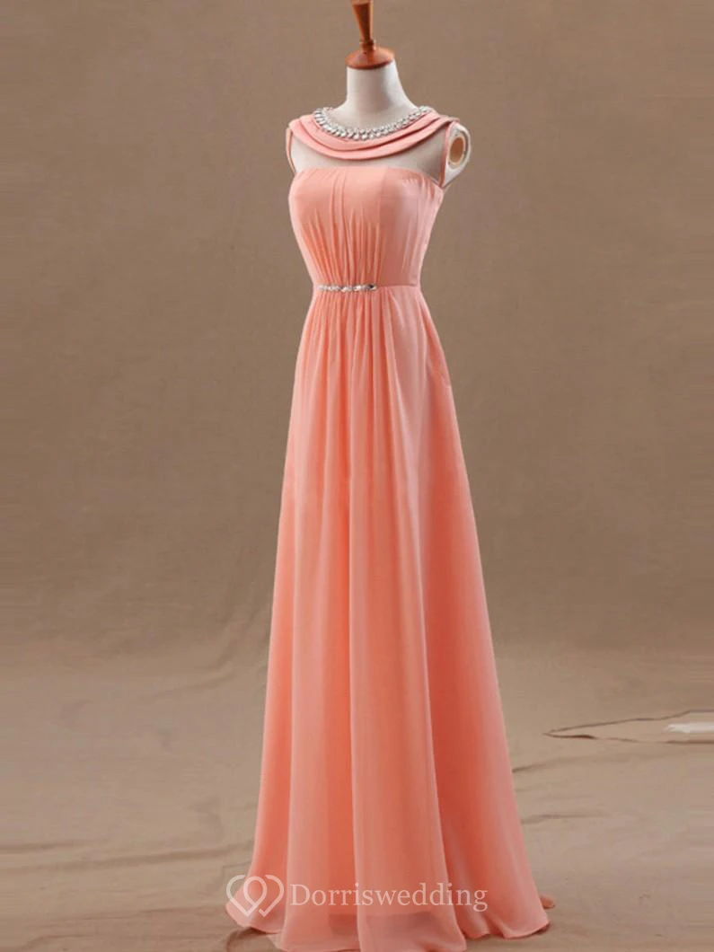 A-line Sleeveless Scoop Beading Chiffon Floor-length Dresses