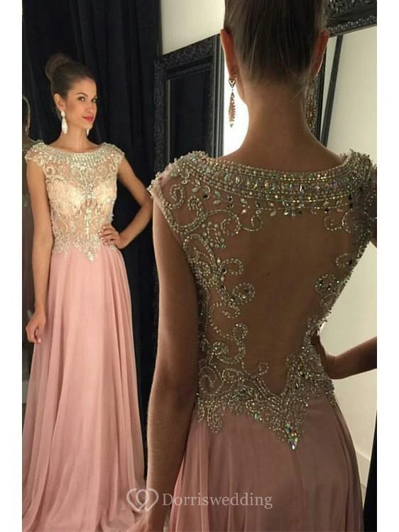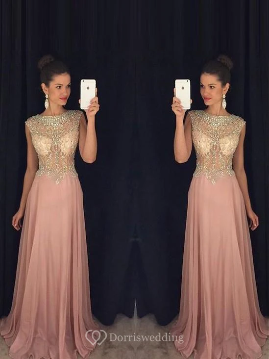 A-line Sleeveless Scoop Beading Chiffon Sweep Train Dresses