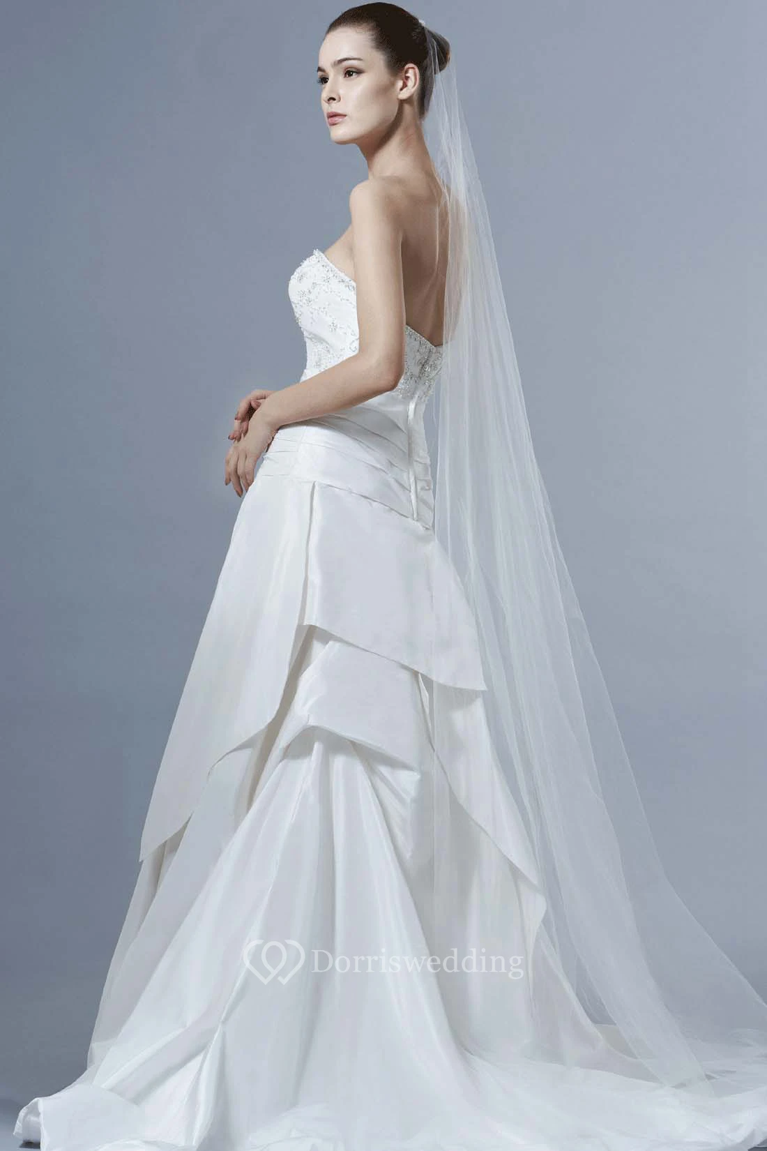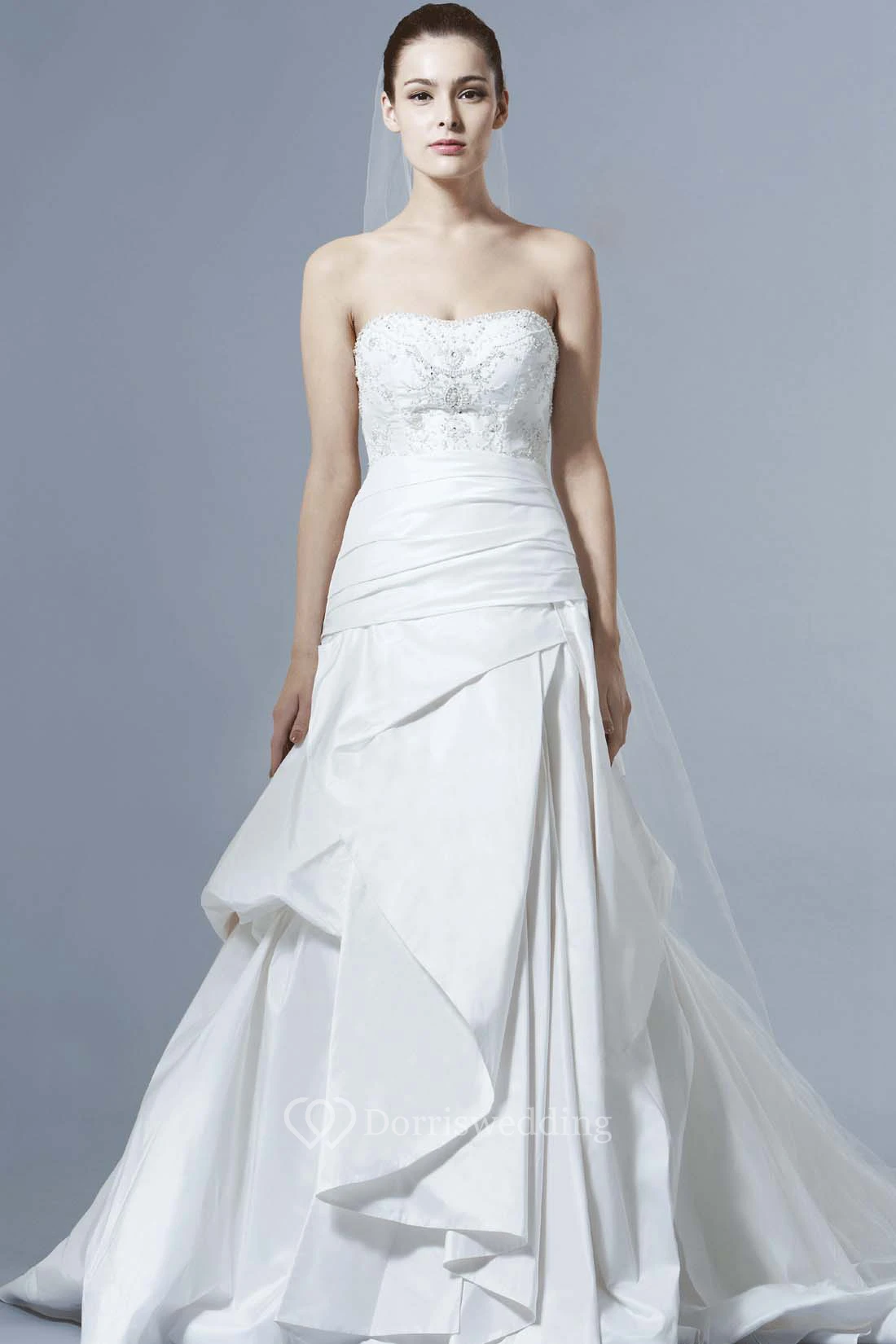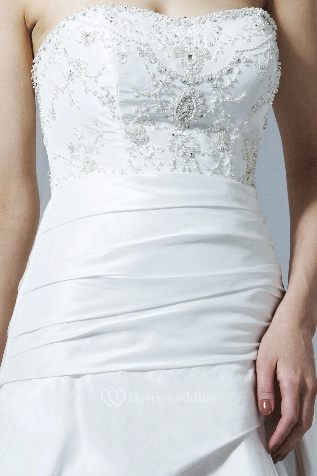 A-Line Sleeveless Strapless Draped Floor-Length Satin Wedding Dress With Backless Style And Beading