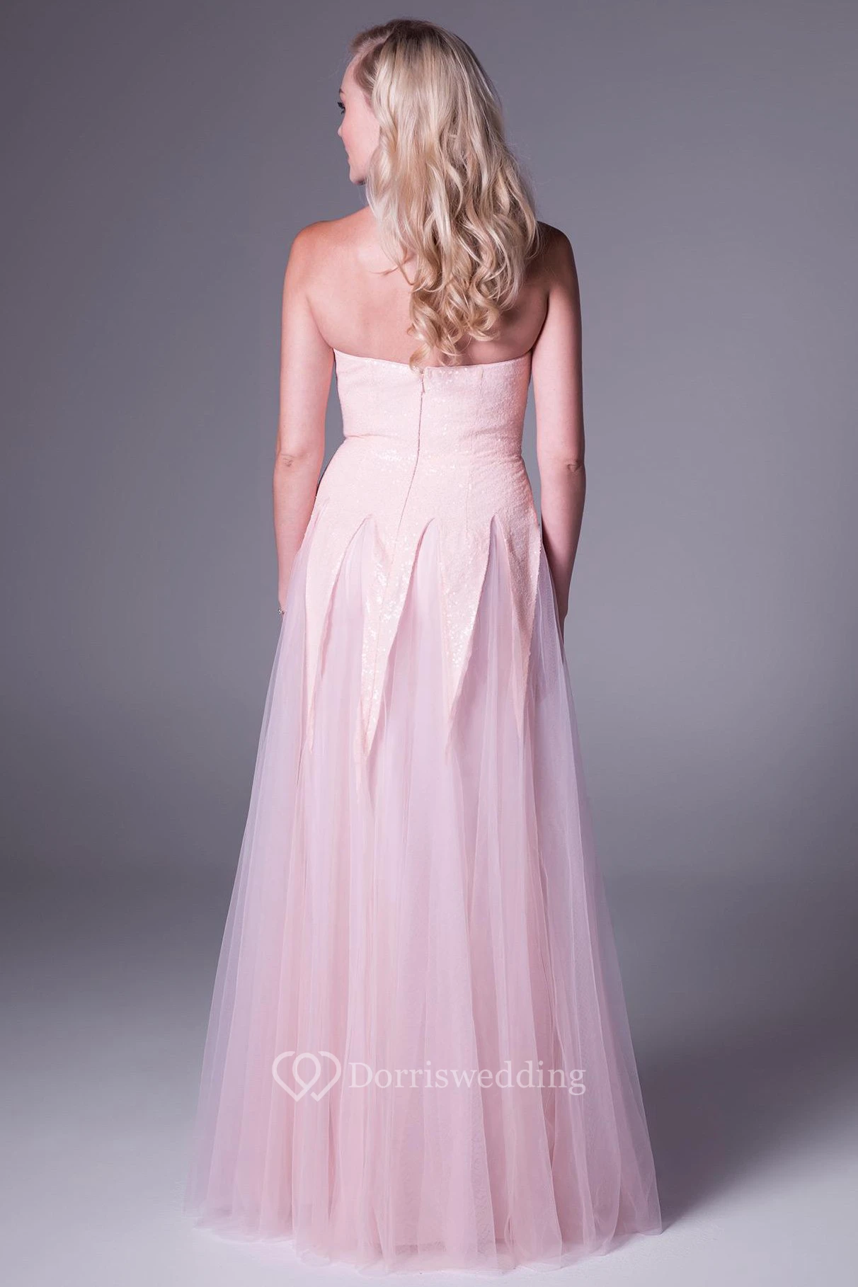 A-Line Sleeveless Strapless Floor-Length Tulle Prom Dress