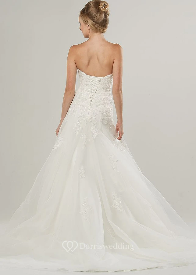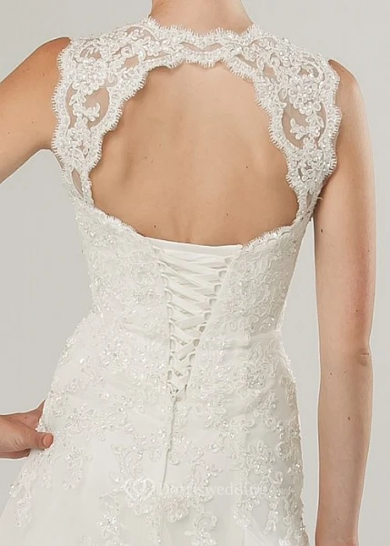 A-Line Sleeveless Strapped Beaded Long Lace&Tulle Wedding Dress With Appliques