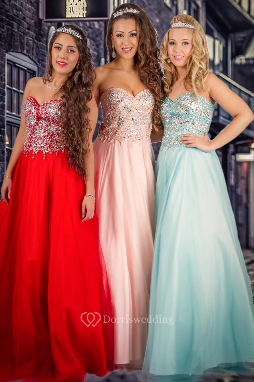 A-Line Sleeveless Sweetheart Beaded Long Tulle Prom Dress With Pleats