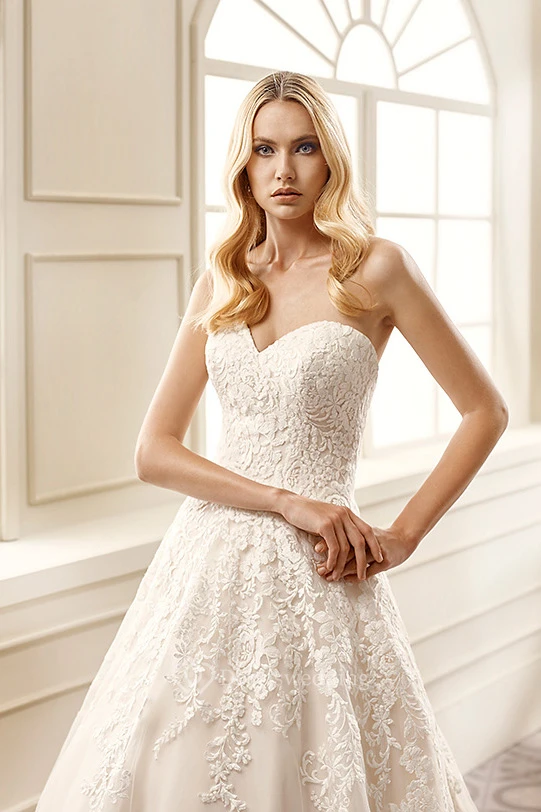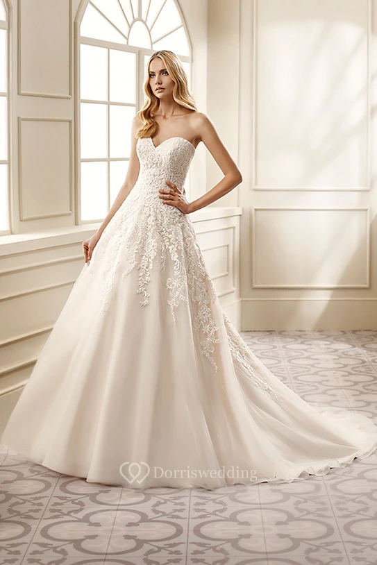 A-Line Sleeveless Sweetheart Floor-Length Appliqued Lace Wedding Dress